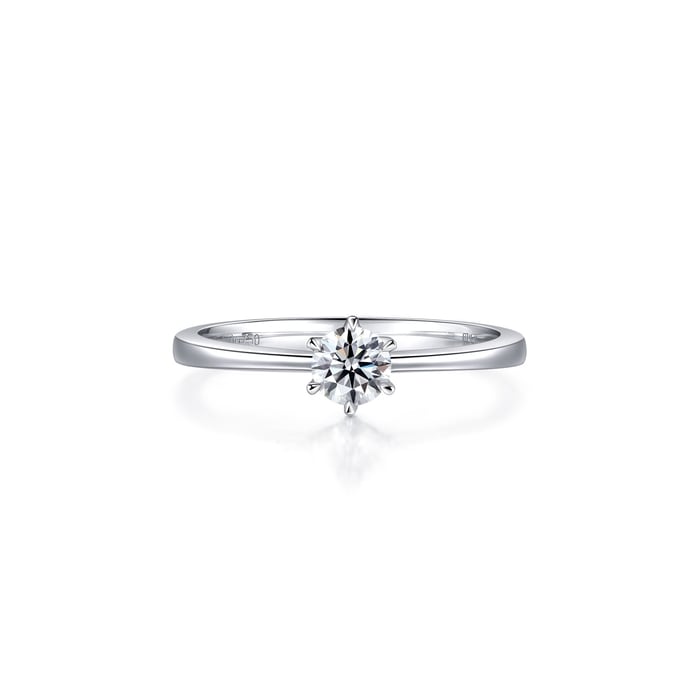 周生生戒指以「如一」為設計主題,閃亮美鑽以六爪鑲嵌,設計經典,同時凸顯主石,寓意此生如一。 經典求婚鑽戒簡約時尚,其中以四爪及六爪鑲嵌款式最為新人擁戴。象徵細水長流,永恆不變的承諾。