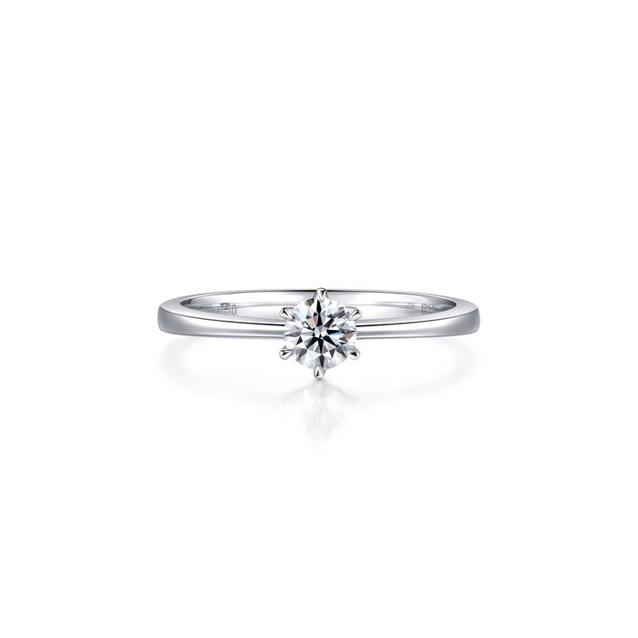 周生生戒指以「如一」為設計主題,閃亮美鑽以六爪鑲嵌,設計經典,同時凸顯主石,寓意此生如一。 經典求婚鑽戒簡約時尚,其中以四爪及六爪鑲嵌款式最為新人擁戴。象徵細水長流,永恆不變的承諾。