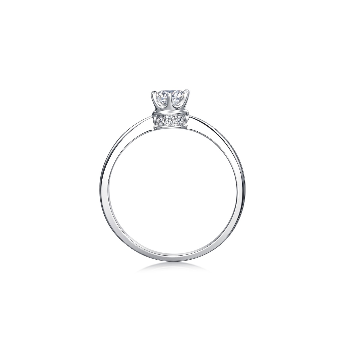 周生生戒指以「小皇冠」為設計主題,環狀鑽石圈托高主石美鑽,無論任何角度,都能感受到高貴閃亮。