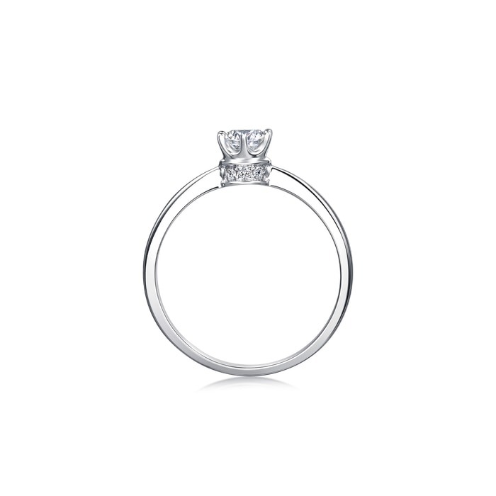 周生生戒指以「小皇冠」為設計主題,環狀鑽石圈托高主石美鑽,無論任何角度,都能感受到高貴閃亮。
