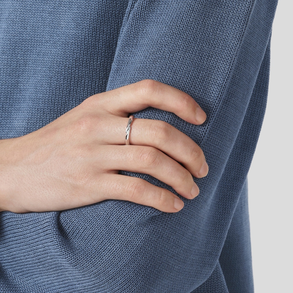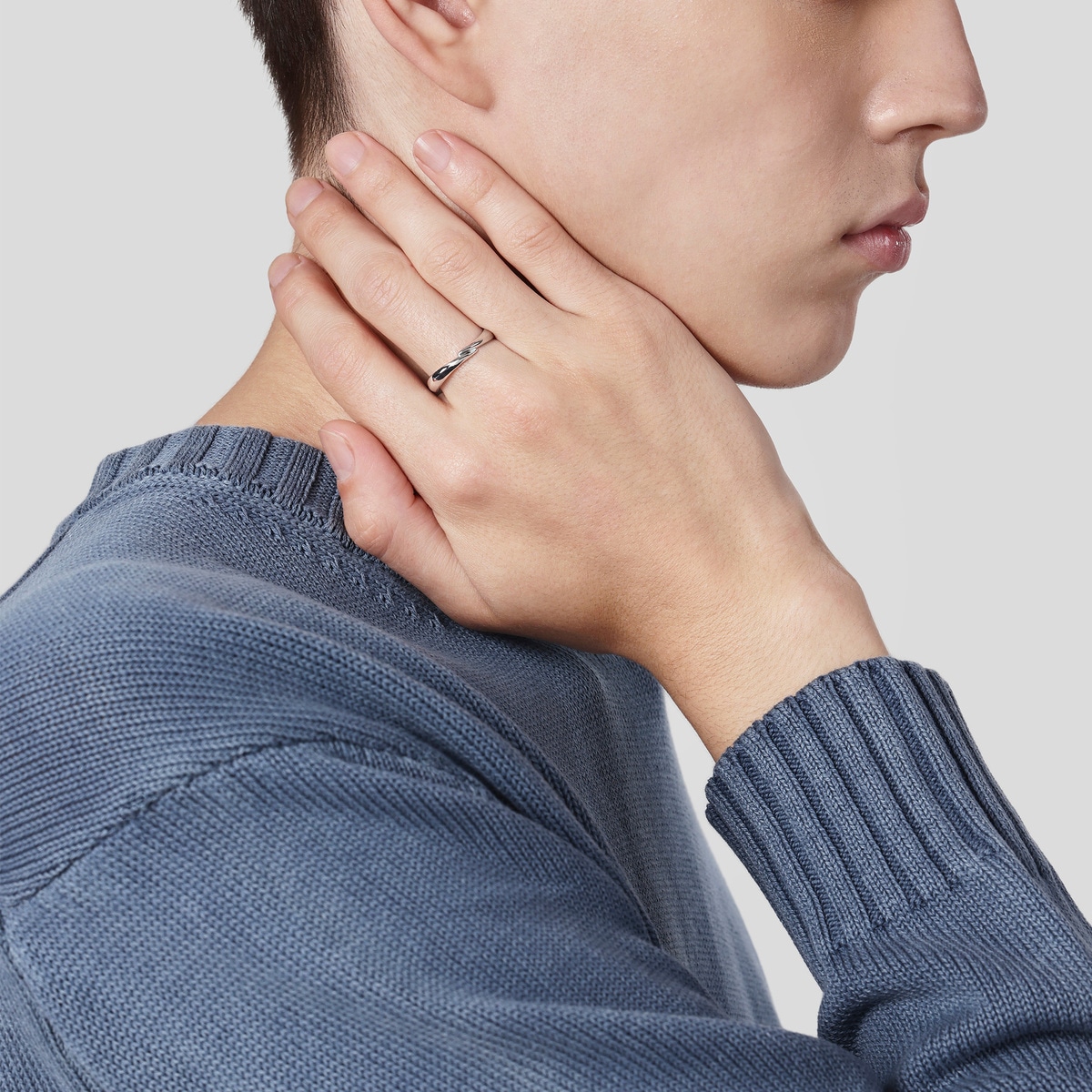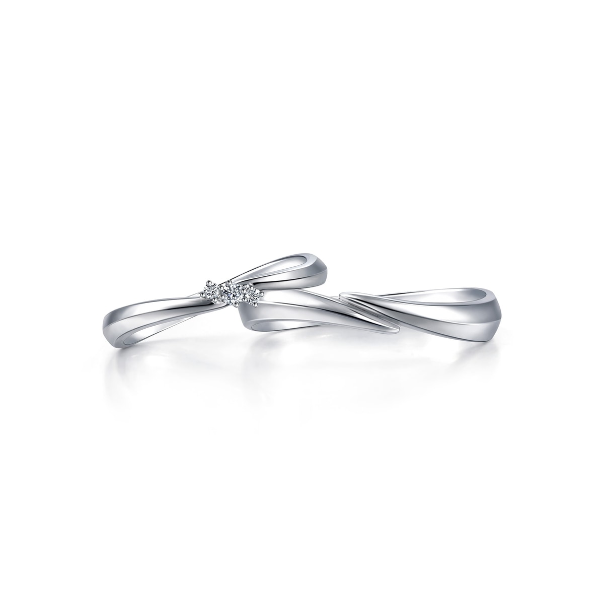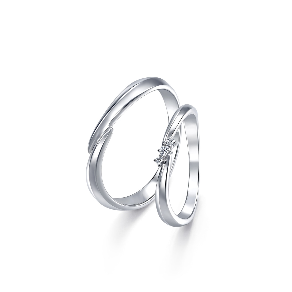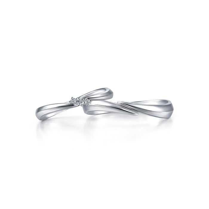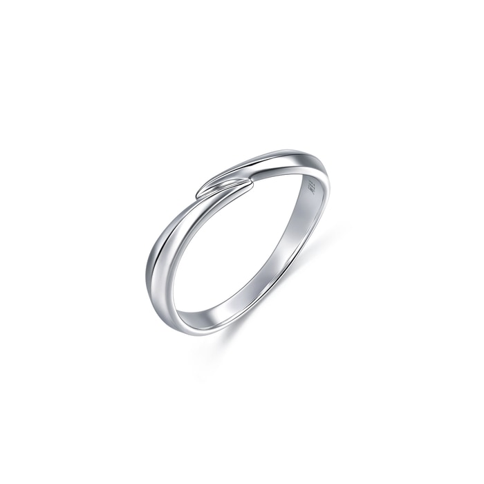 周生生18K白色黃金戒指,以流暢柔美的線條為設計,象徵兩人的愛情軌跡彼此靠近,猶如「星宇」中的浪漫邂逅,適合日常配襯。