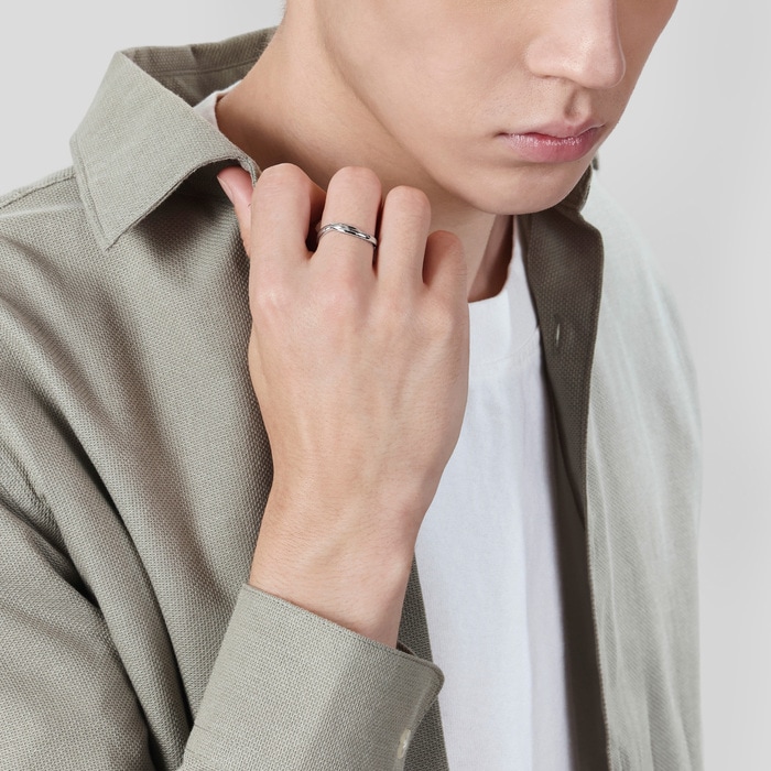 周生生18K白色黃金戒指,以流暢柔美線條為設計元素,猶如「星宇」中的浪漫邂逅,適合日常配襯。