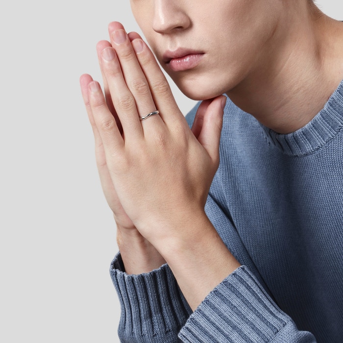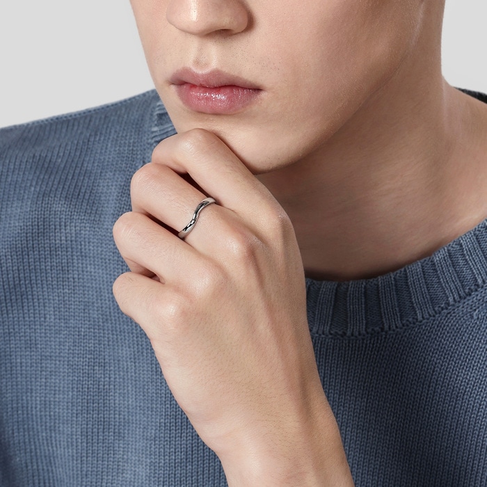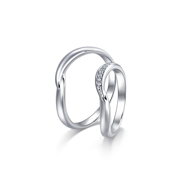 周生生18K白色黃金戒指,以相互交匯的曲線為設計,猶如「星宇」中的浪漫邂逅,於銀河下印證永恆約定,適合日常配襯。