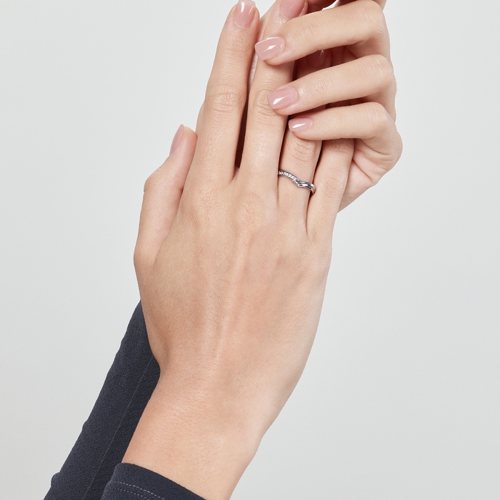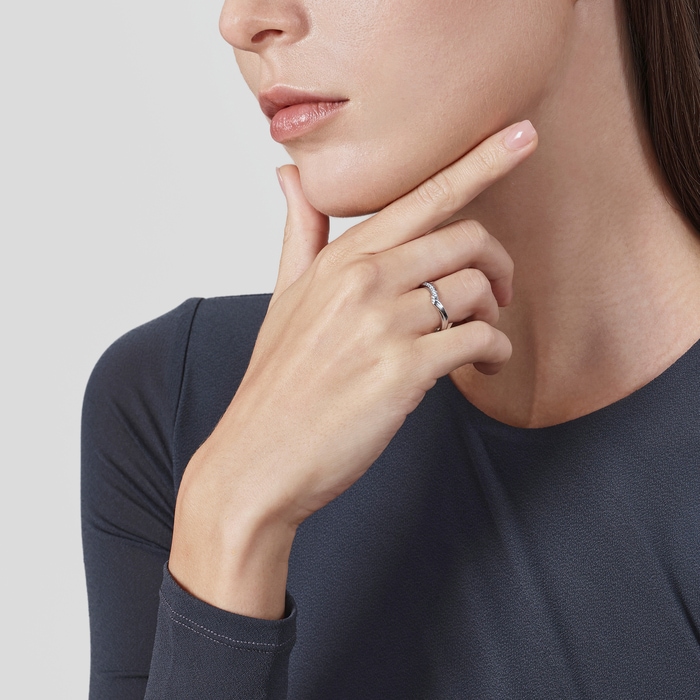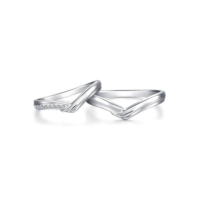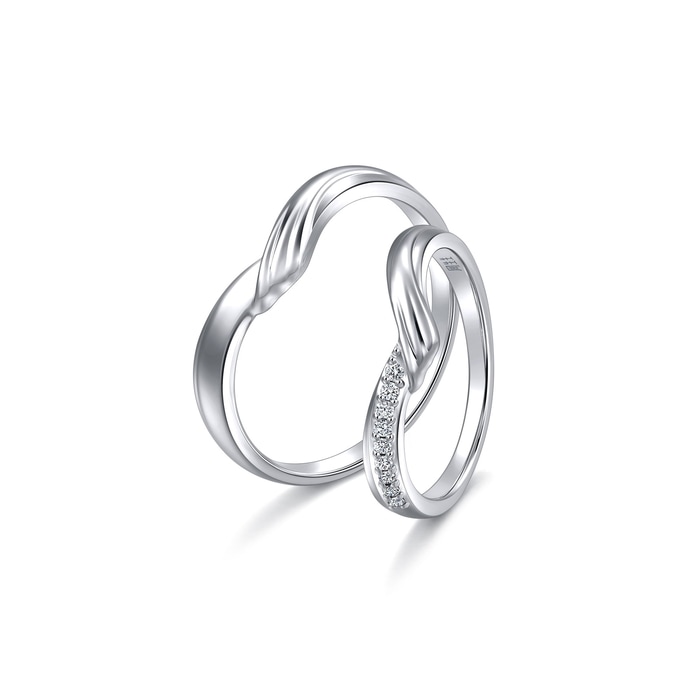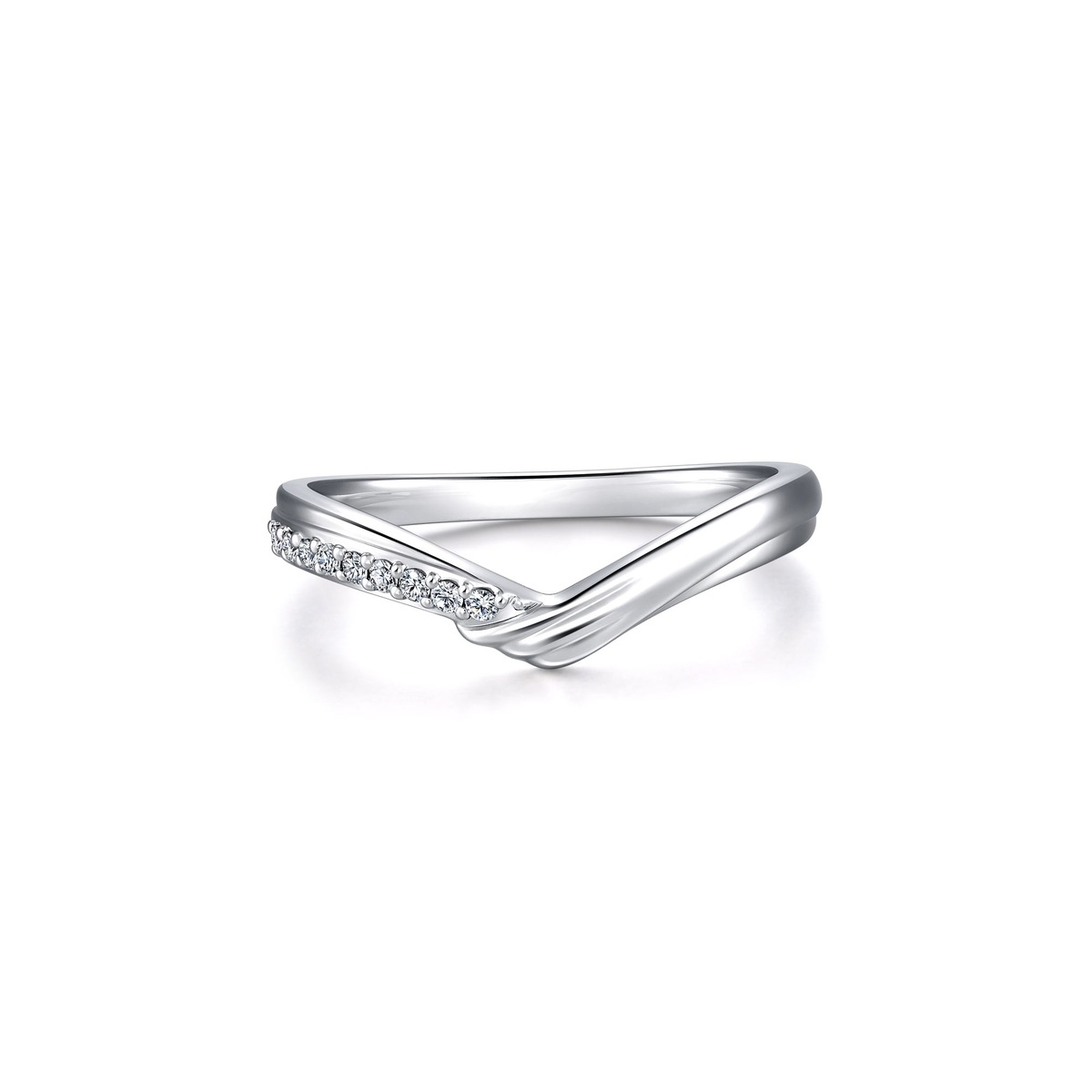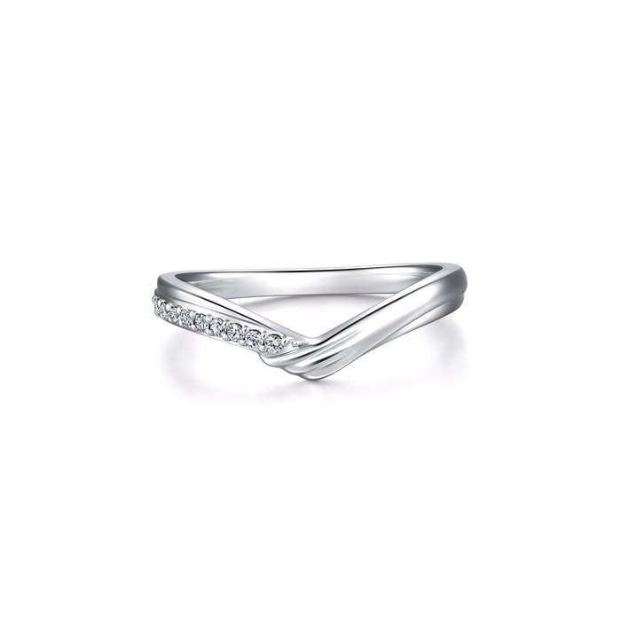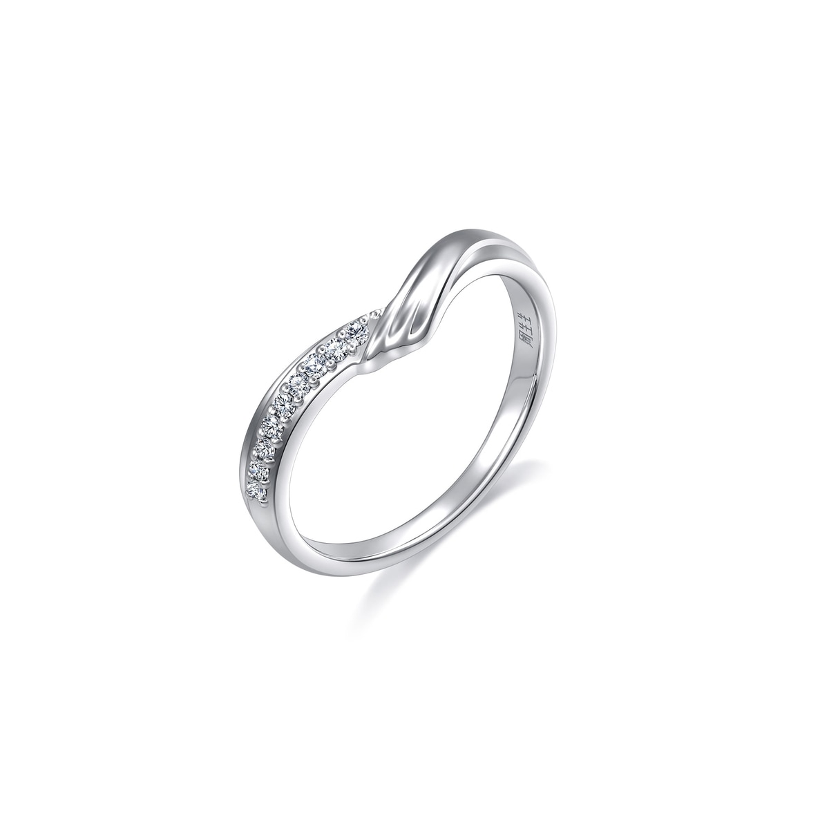 周生生18K白色黃金鑽石戒指,線條靈動流暢,綴有單排美鑽映襯,如浩瀚「星宇」中浪漫邂逅,適合日常配襯。