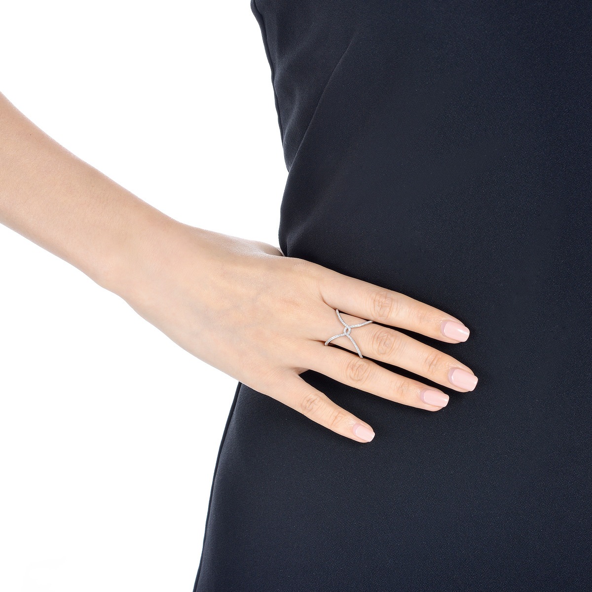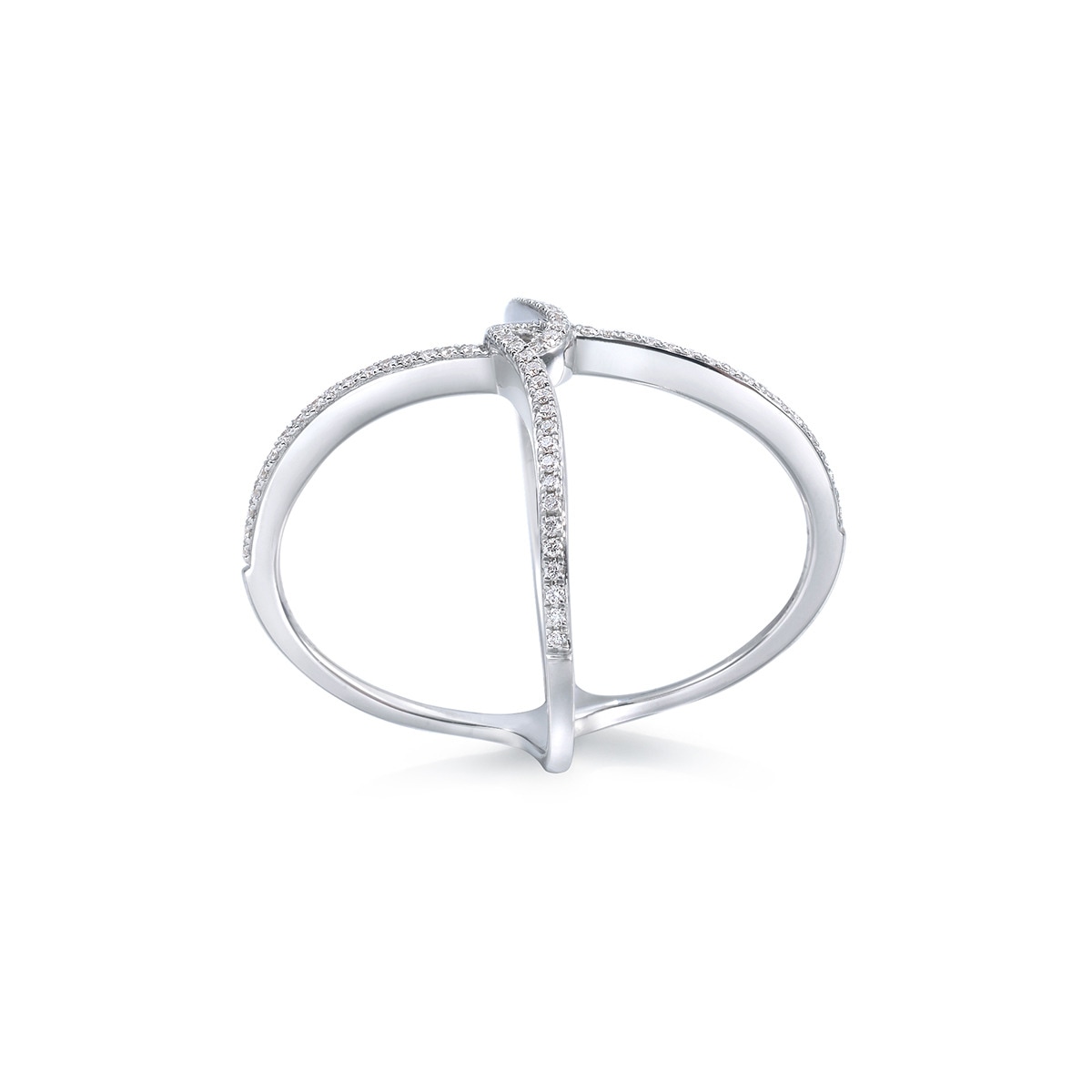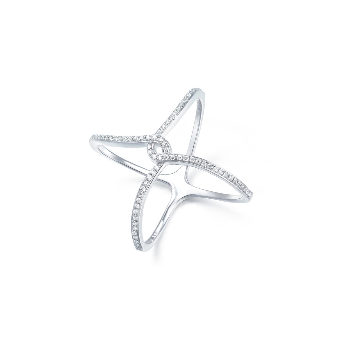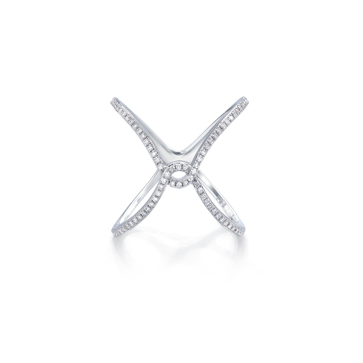 縱橫交錯的戒指,呈現出幾何圖案,鏤空式設計,綴滿鑽石,簡約易襯,極具層次美。