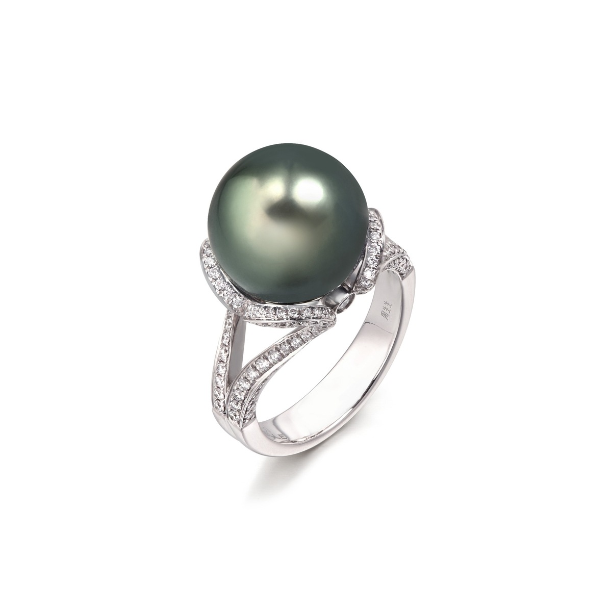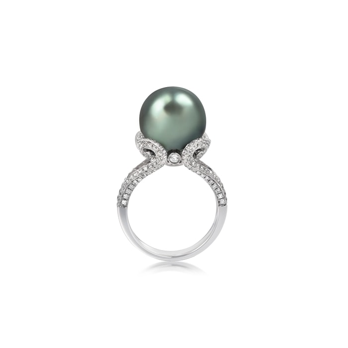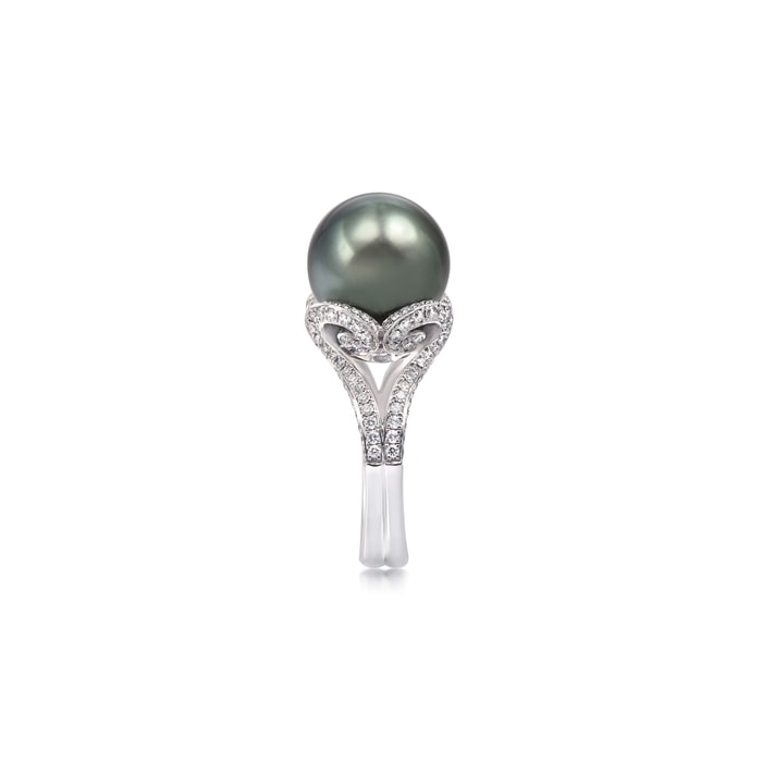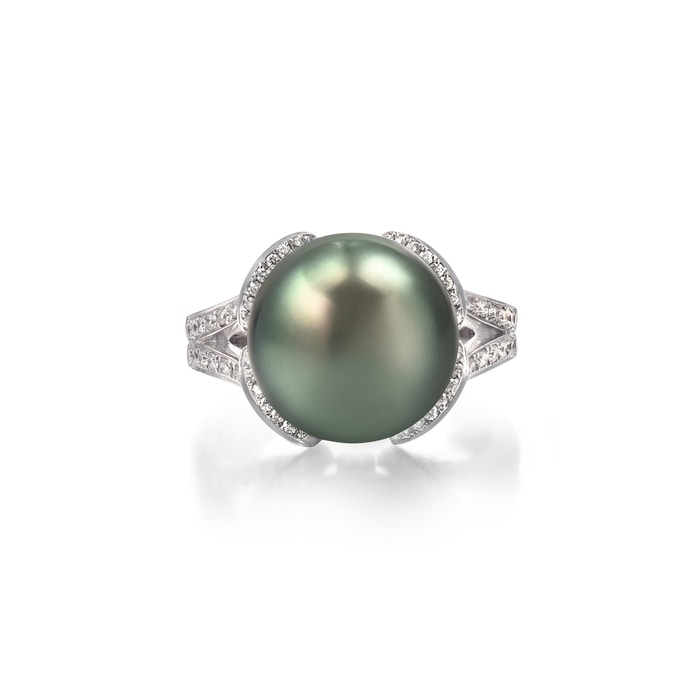 18K/750白色黃金大溪地養殖珍珠戒指