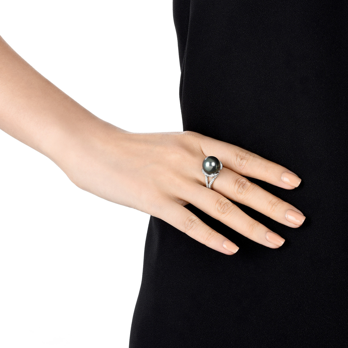 La Pelle 18K 白色黃金大溪地養殖黑珍珠戒指