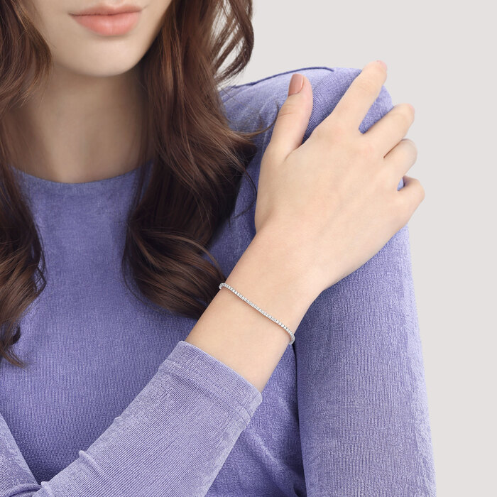 周生生18K白色黃金鑽石手鍊,採用經典雋永的滿鑽設計,以最簡約流暢的線條,呈現鑽石璀璨光芒,無論是單獨佩戴或混搭疊戴,都能輕易駕馭各種日常風格,展現時尚真我。