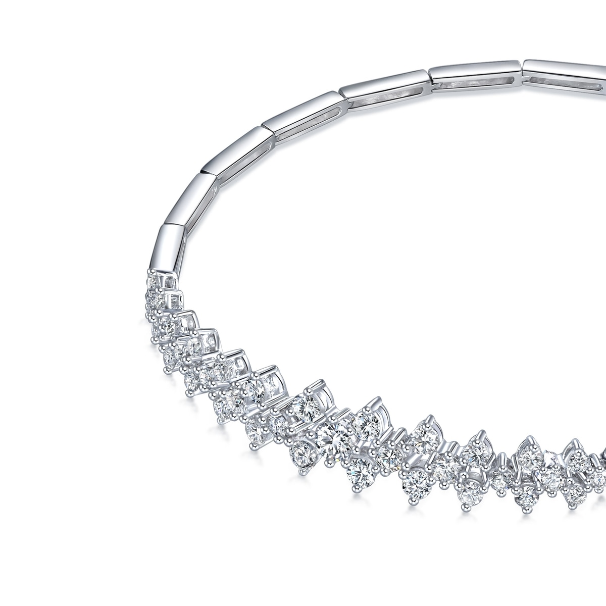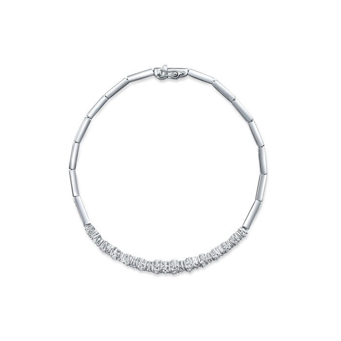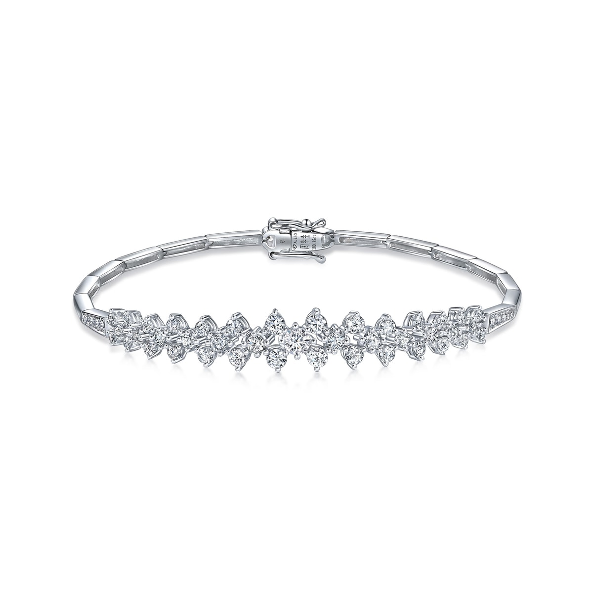 多顆精選美鑽巧妙的排成柳葉形,裝點在經典的竹節式鏈身上,特顯高貴優雅。