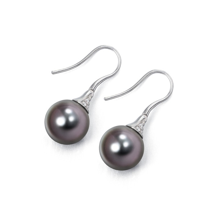 Hodel 18K白色黃金大溪地養殖黑珍珠耳環