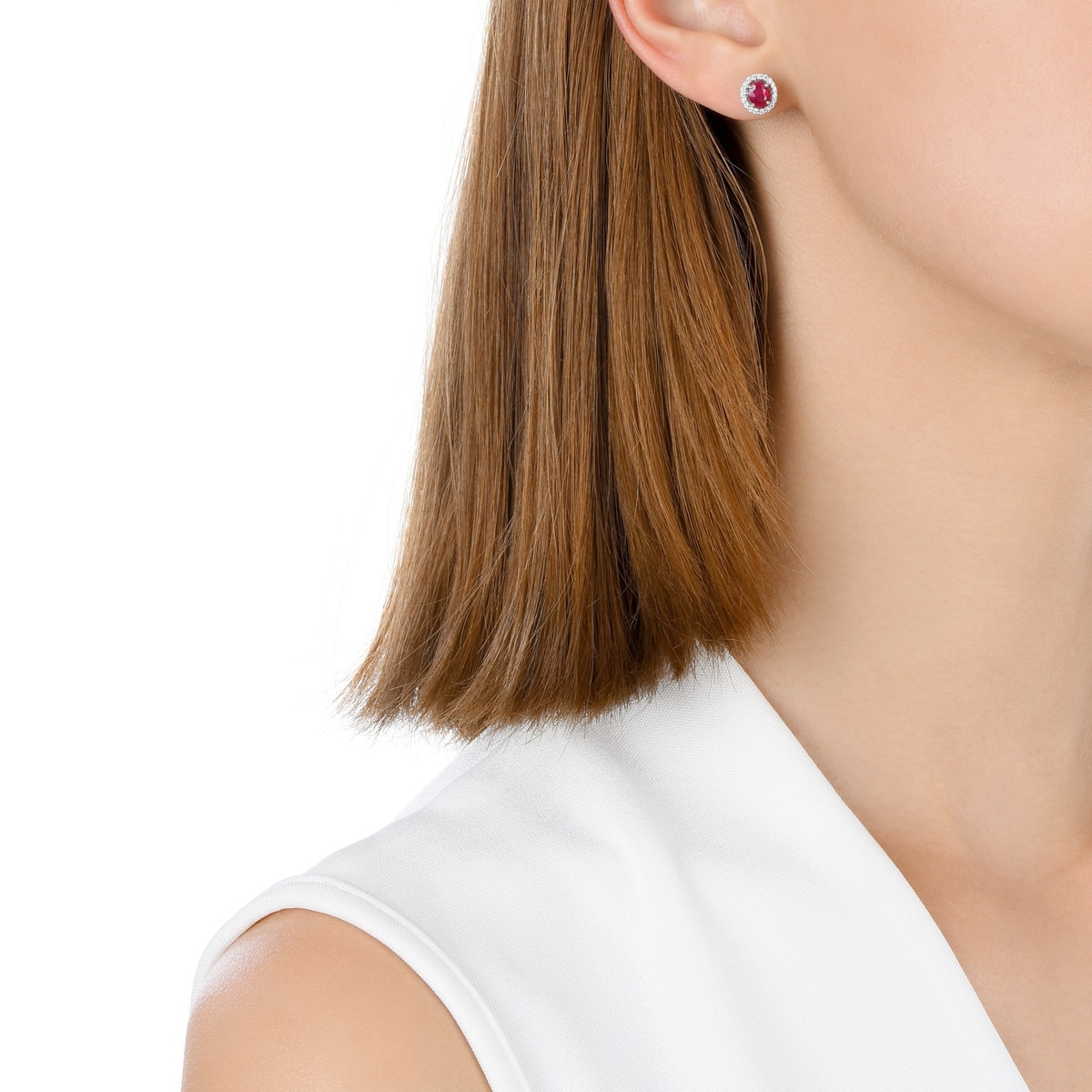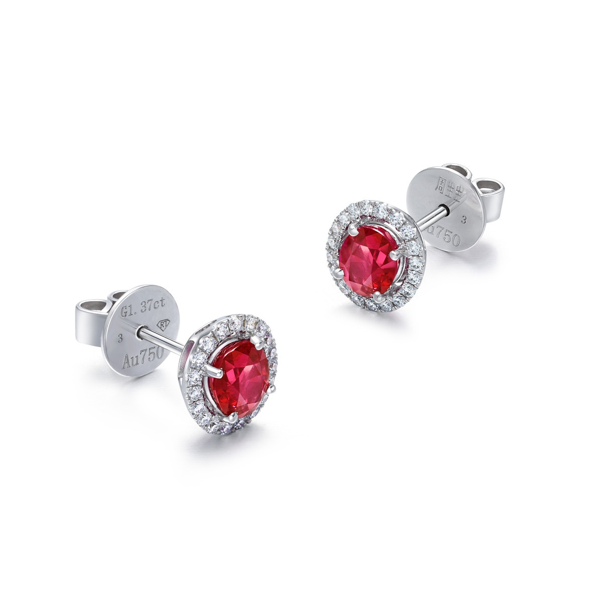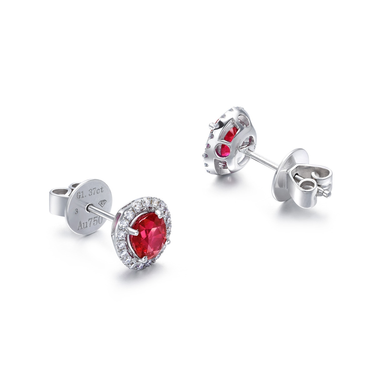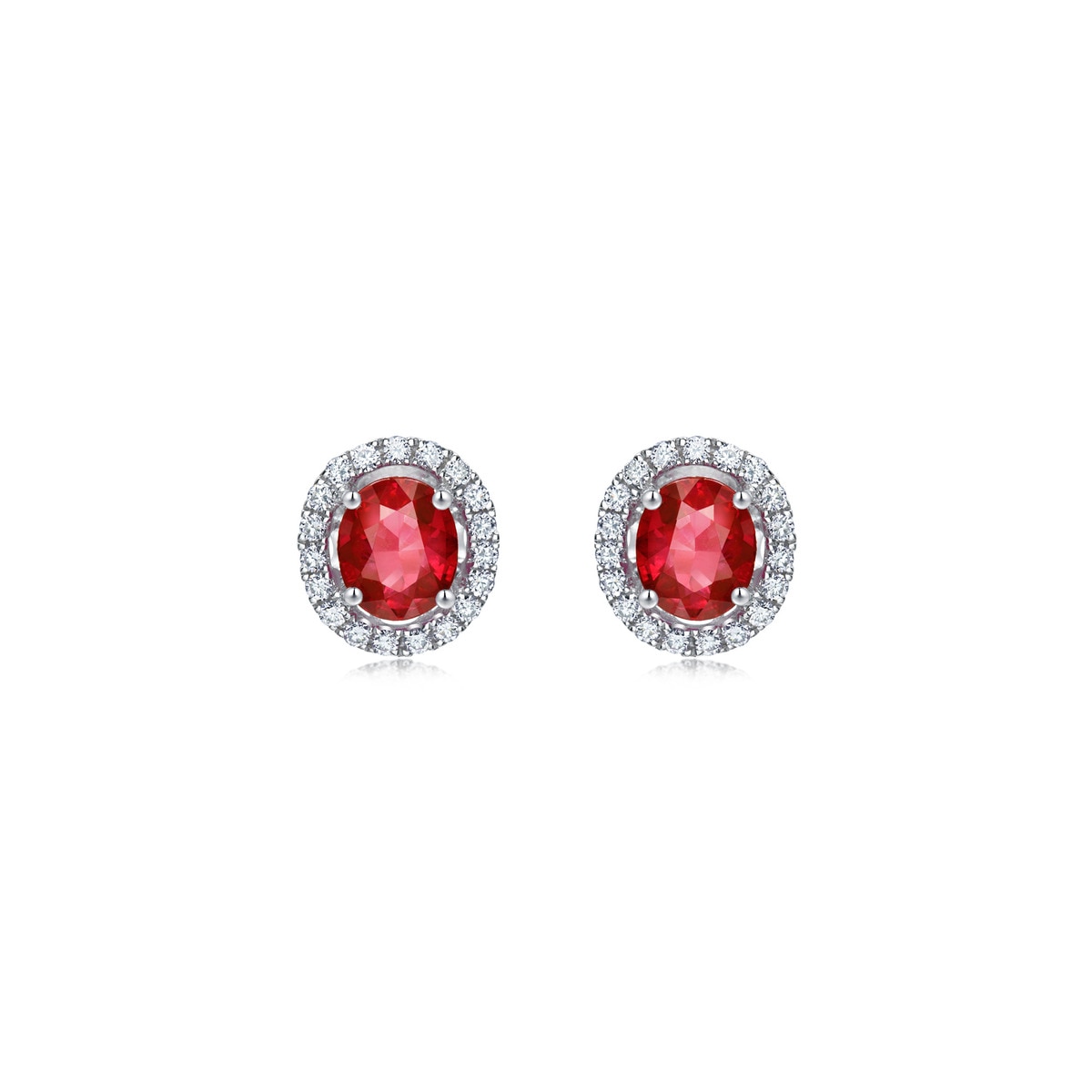 18K/750白色黃金紅寶石耳環