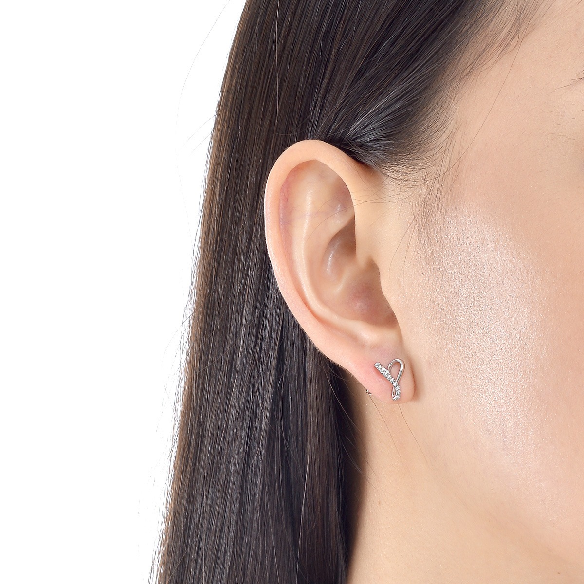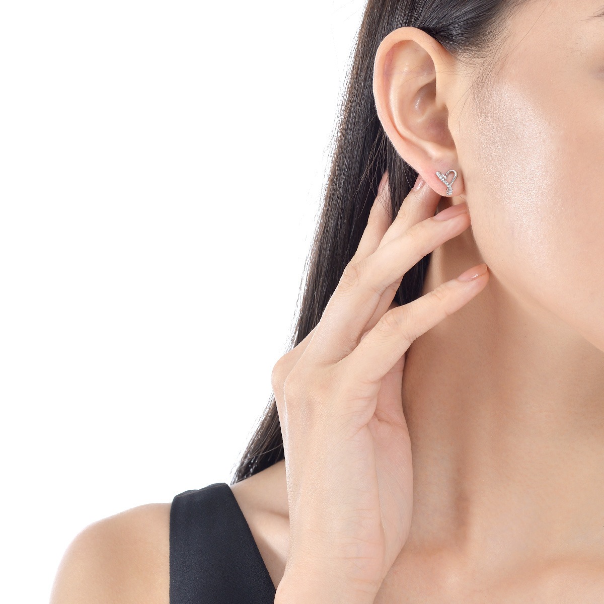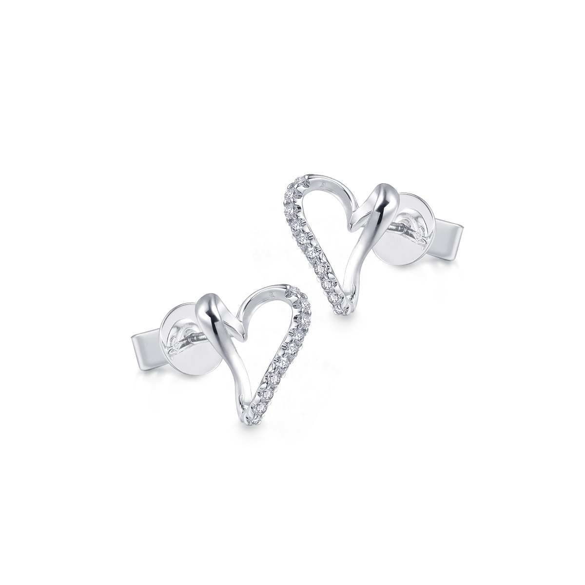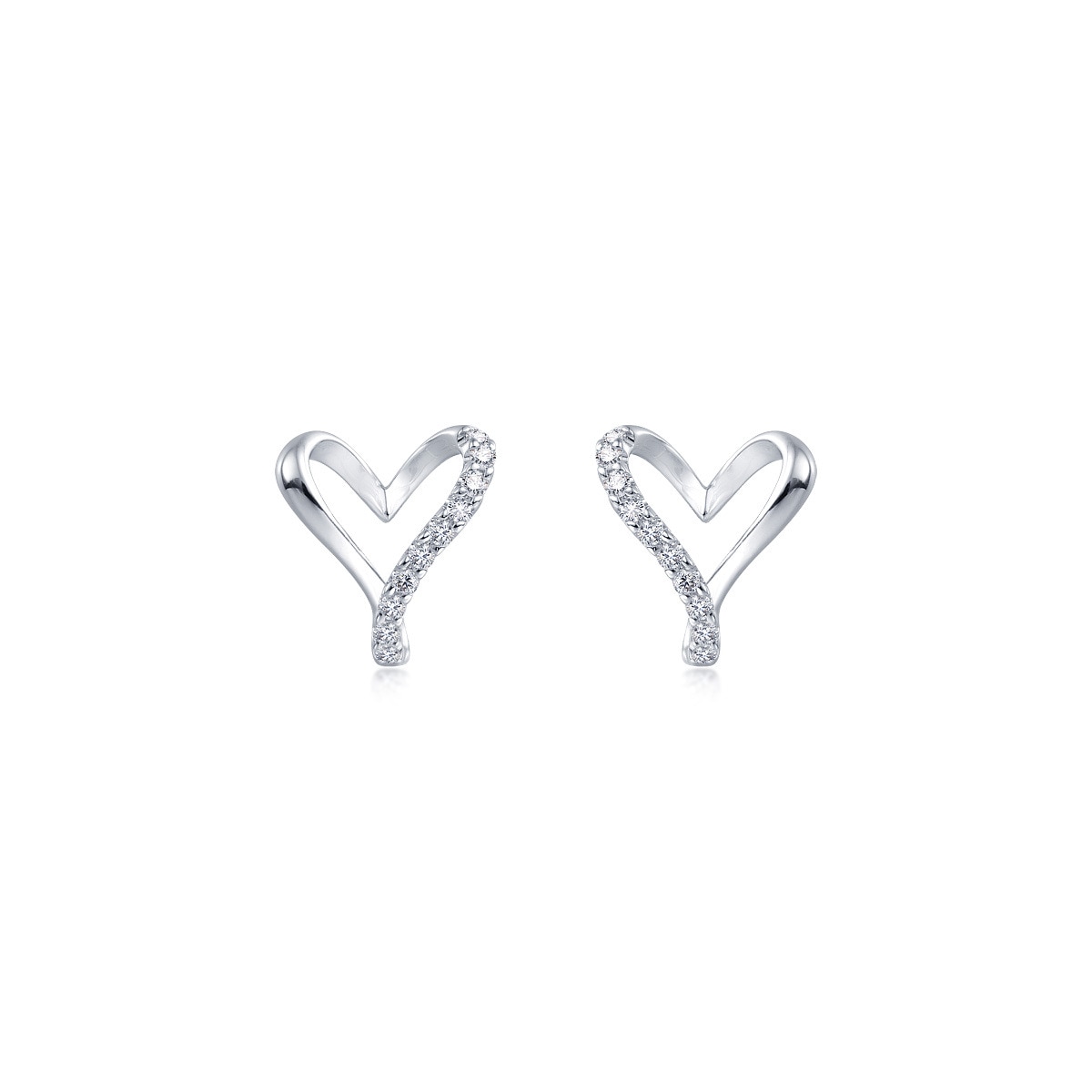 絲帶環繞成心形的耳環設計,細膩雕工,搭配大小不一的鑽石,盡顯無盡的愛。