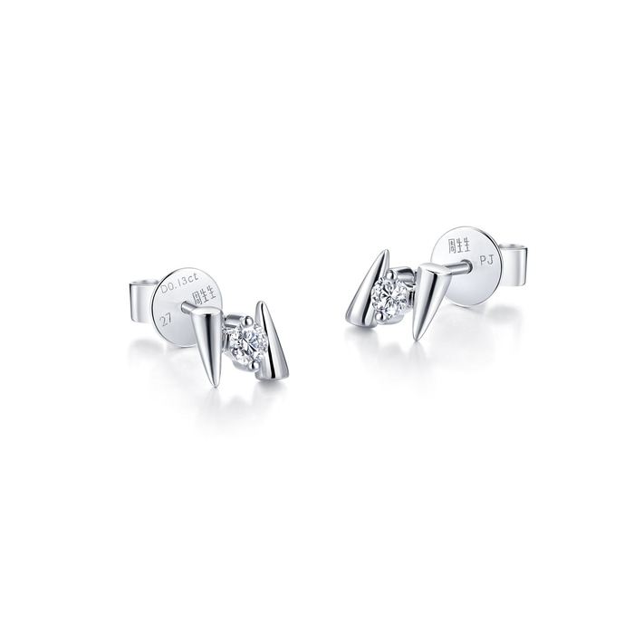 周生生活潑的不對稱H型設計,中間鑲嵌閃爍美鑽,小巧精緻。
