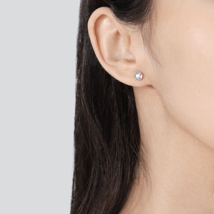 「Daily Luxe」18K 白色黃金圓形鑽石單耳環
