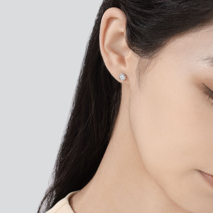 周生生圓形鑽石耳環,散發經典不過時的優雅。