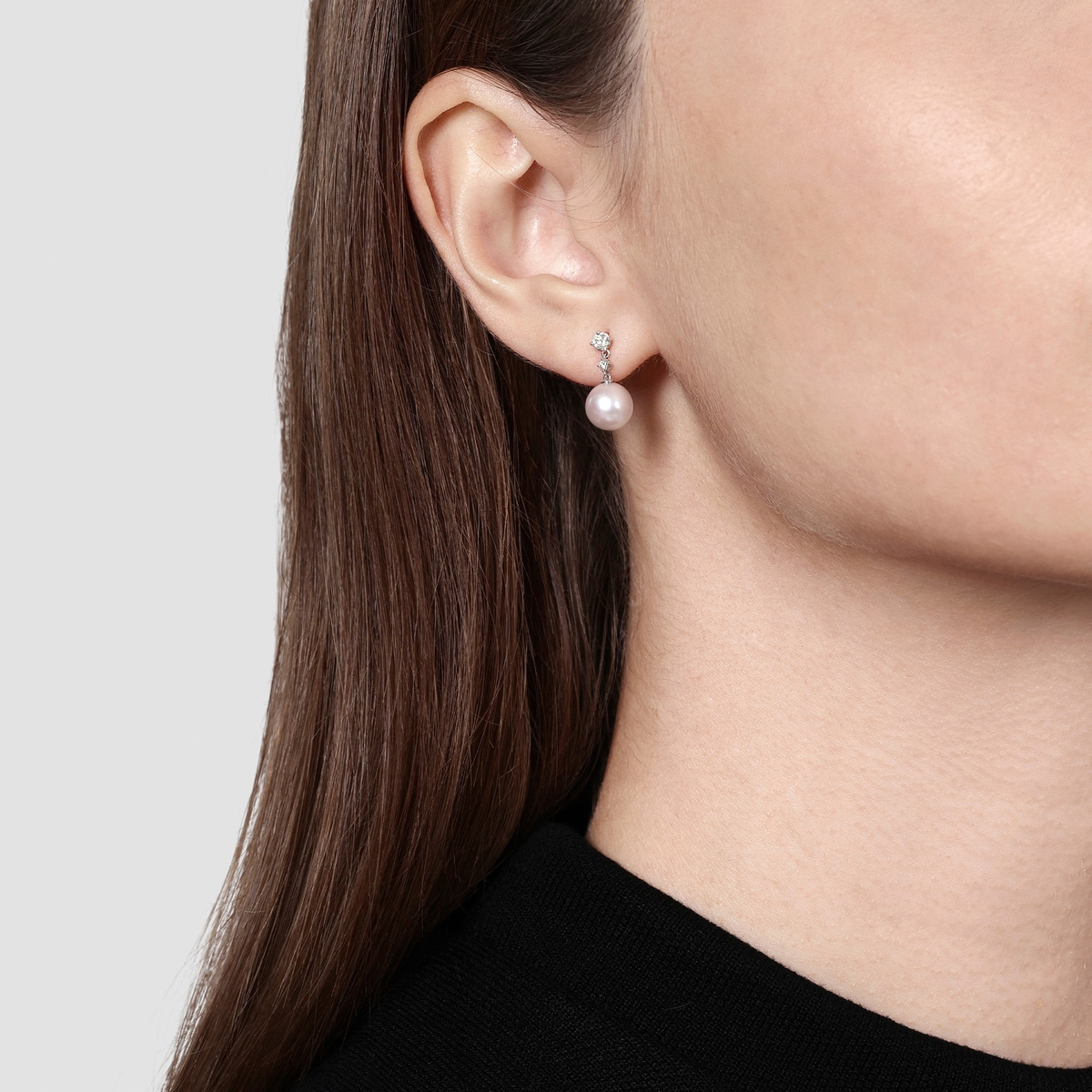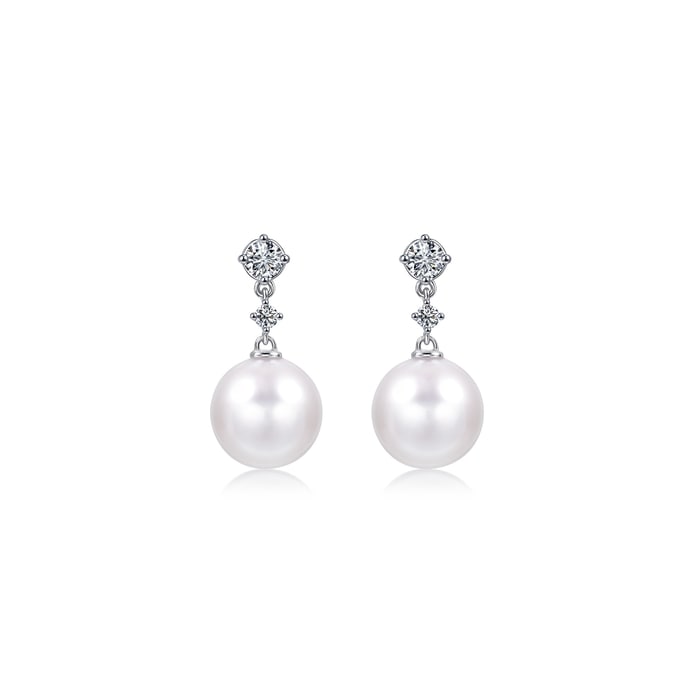 「Basic」18K白色黃金Akoya珍珠鑽石耳環