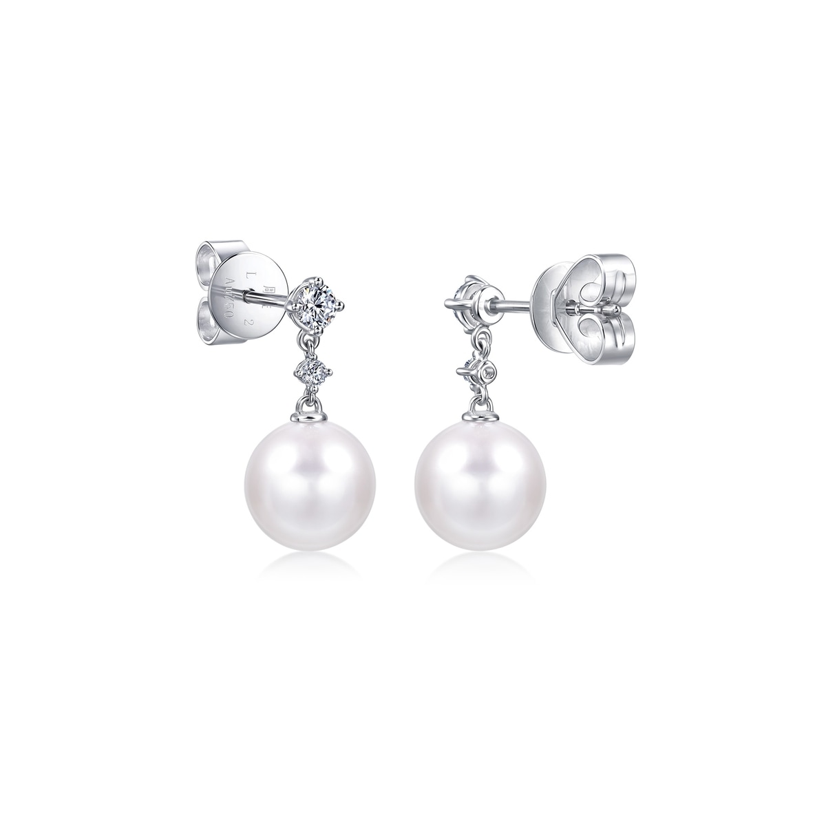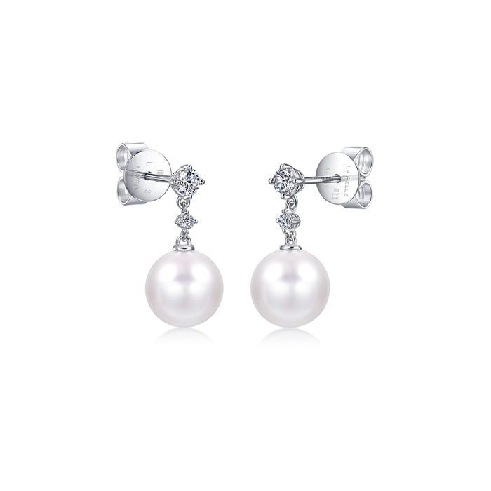 La Pelle 「Basic」18K白色黃金Akoya珍珠鑽石耳環