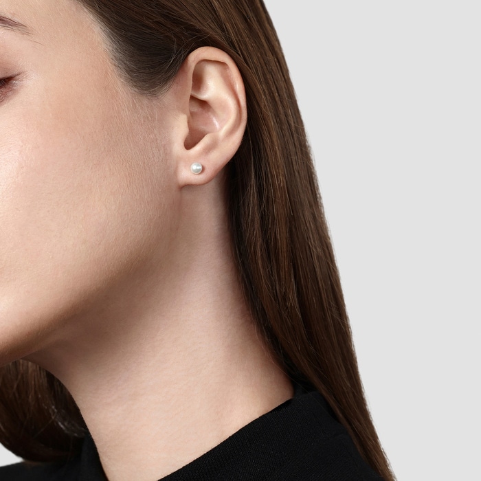 18K/750白色黃金日本Akoya養殖珍珠耳環