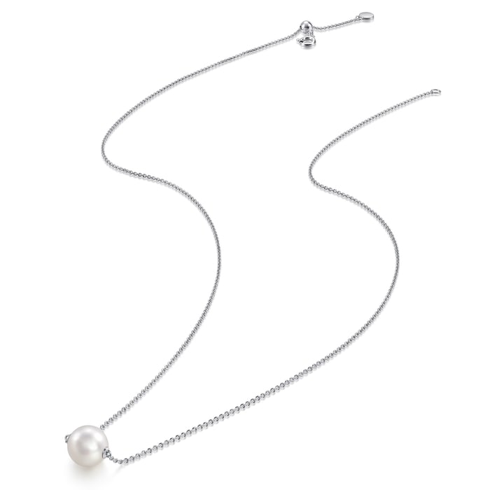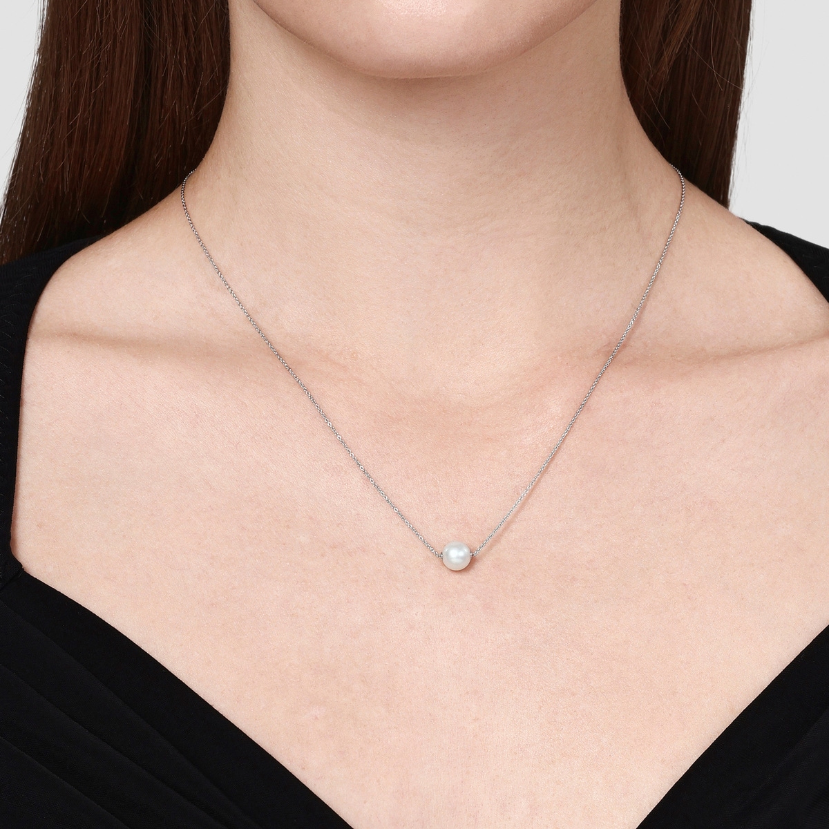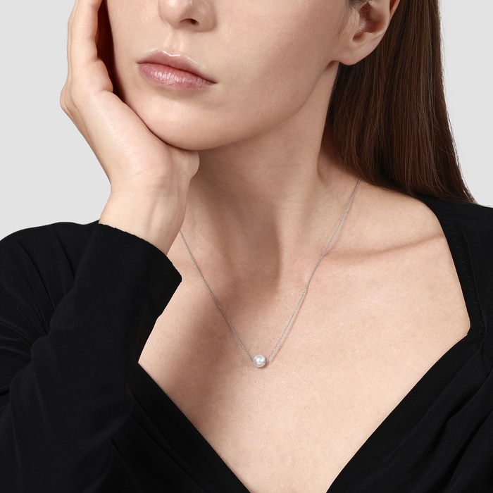 「Basic」18K白色黃金Akoya珍珠頸鍊