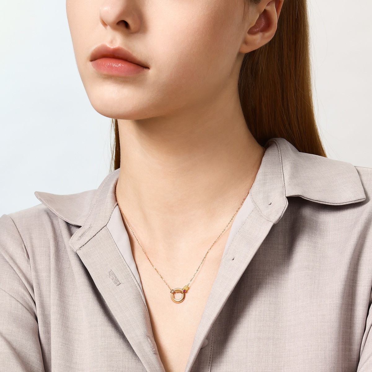 薄荷系列 18K黃紅分色黃金紅寶石頸鍊