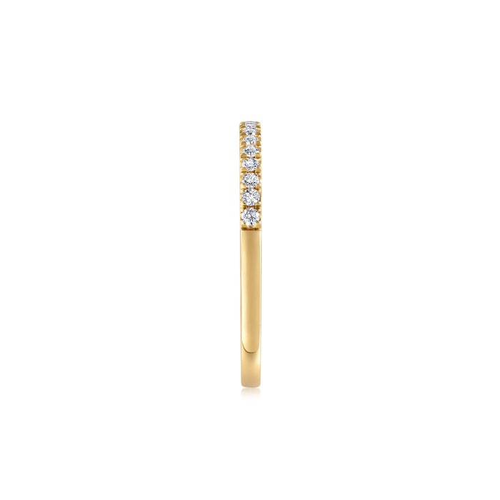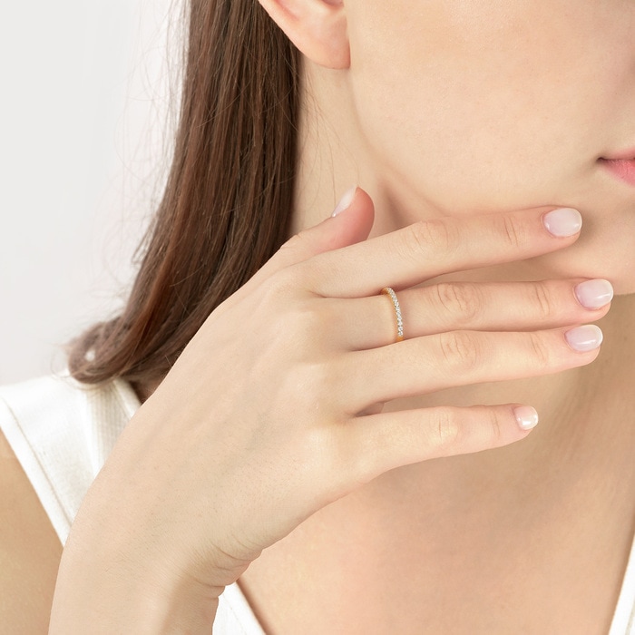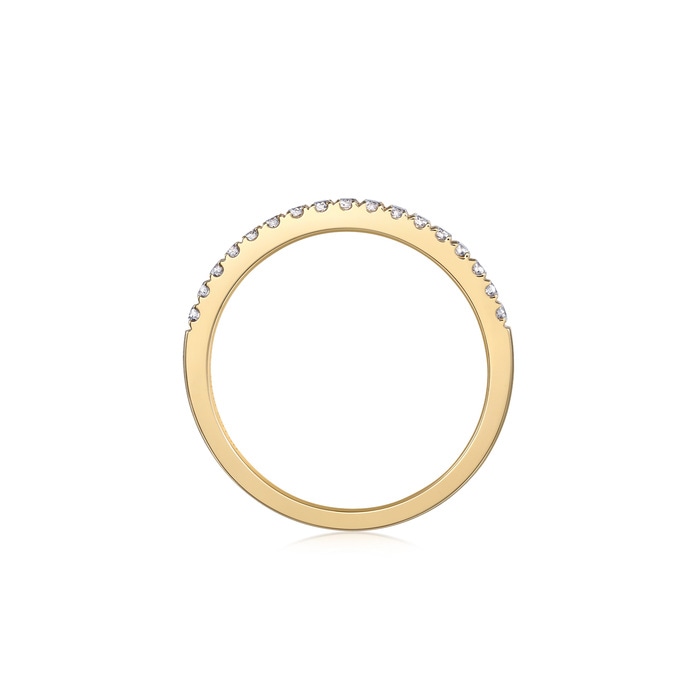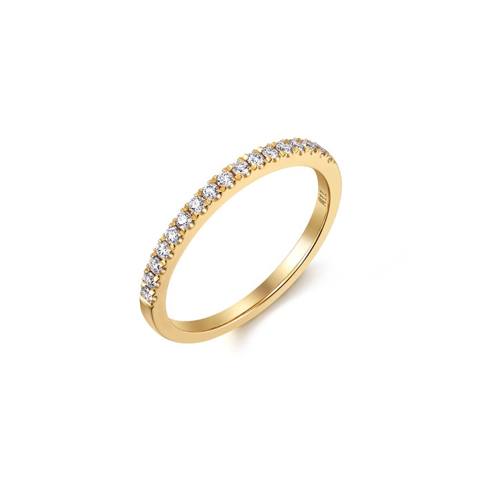 周生生18K 黃色黃金打造的戒指屬於「星宇」系列,戒環綴上猶如星之軌跡的排鑽,閃爍動人,見證兩口子的閃耀愛情路。款式簡約時尚,適合與鑽石戒指疊戴。