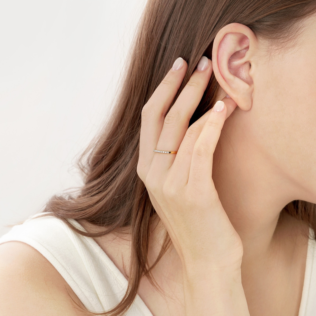 輕輕調整耳環至合適位置