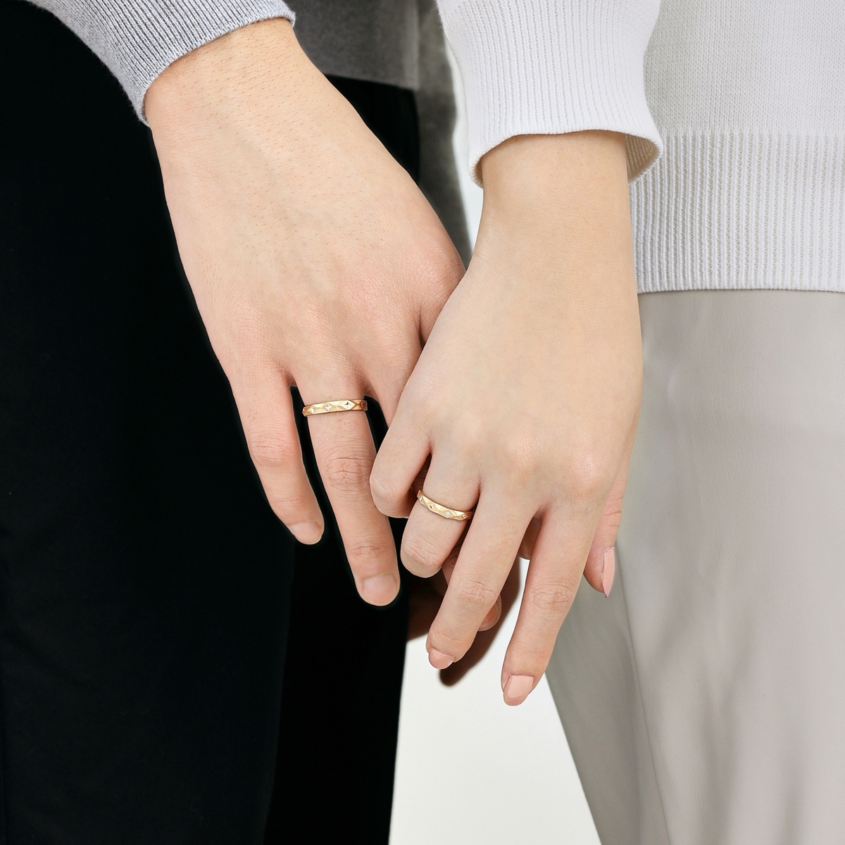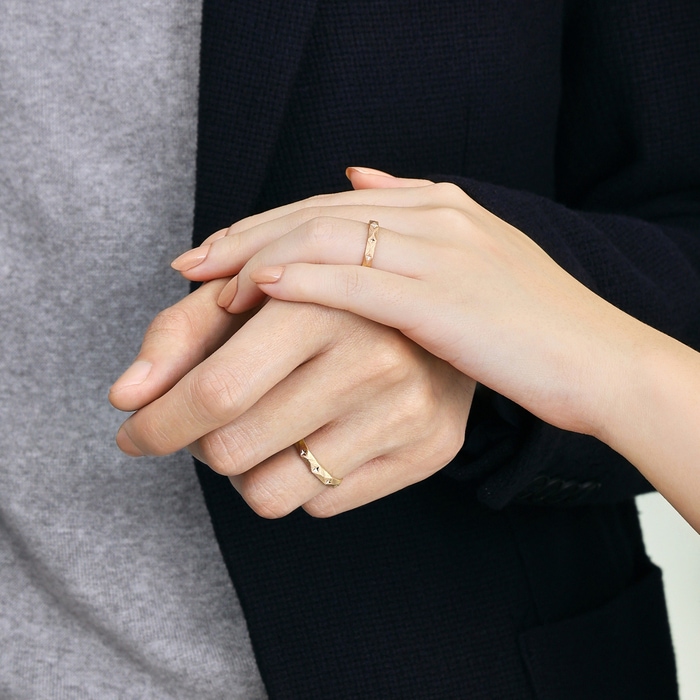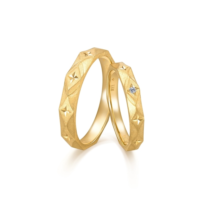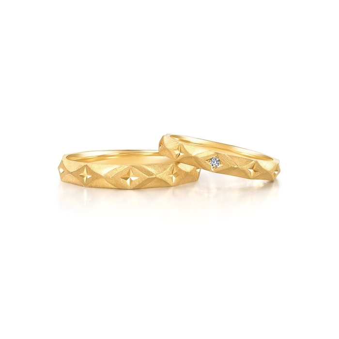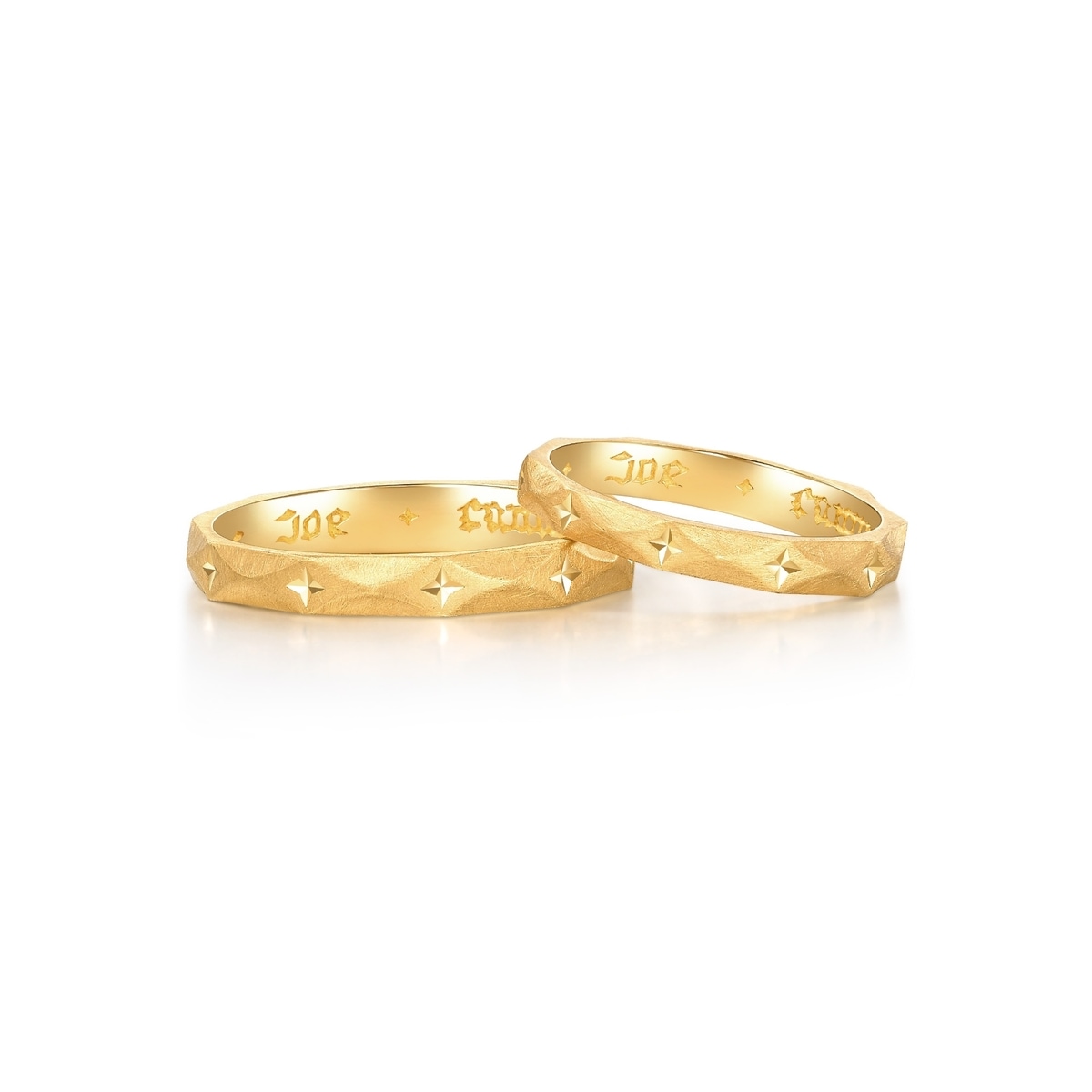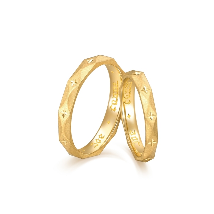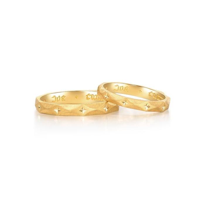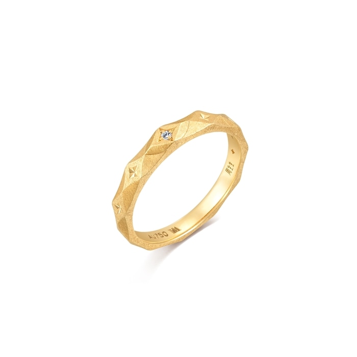 周生生18K黃色黃金鑽石戒指屬於V&A典藏系列,靈感源於中古時期愛語戒指“Posy Ring”,Posy意指「題詩」,當時戀人流行在結婚戒指刻上愛情詩句,傳達無限愛意。戒指內圈刻有古文“ioe saunz fine”的甜蜜箴言,意思是“Joy without end”,承諾一生無盡的愛,外圈則採用獨特菱形切割打磨,以現代工藝重新演繹古典設計,集時尚與典雅於一身。