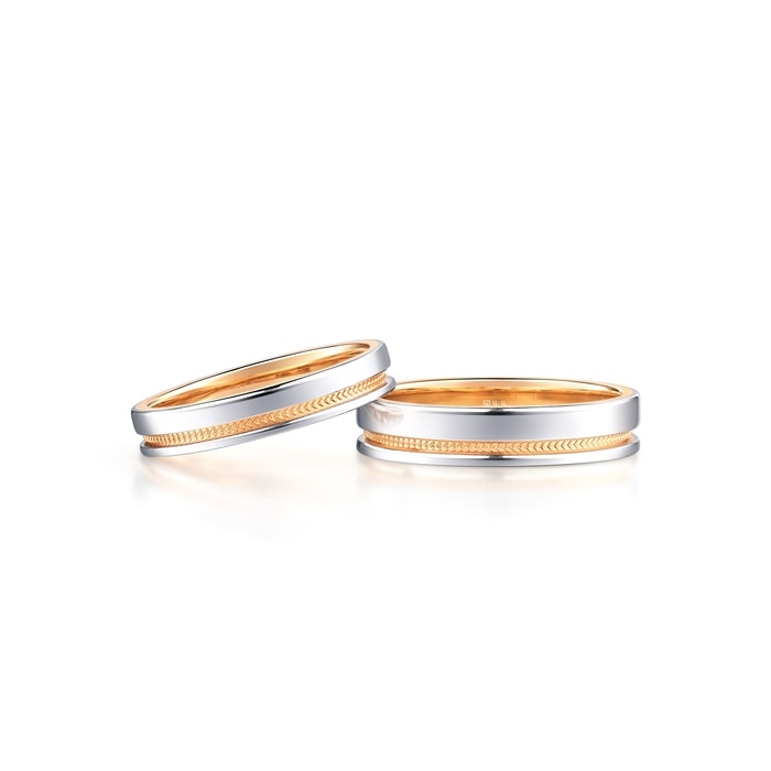 周生生戒指以「小皇冠」為設計主題,用最可愛的元素,展現甜美公主風,如同花環風格冠冕,為你閃耀加冕,如公主般幸福出嫁,永遠寵愛你。精美的光滑對戒,配上細緻的珠邊,添加浪漫魅力。