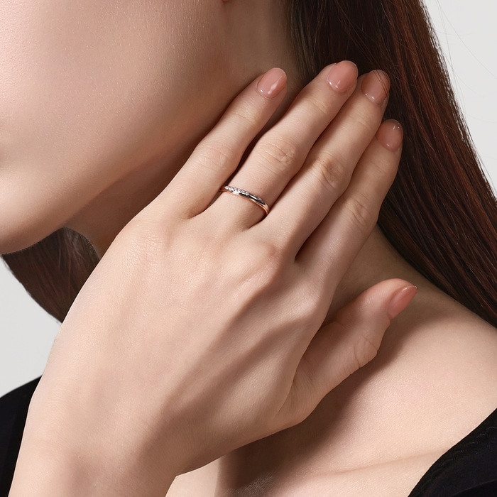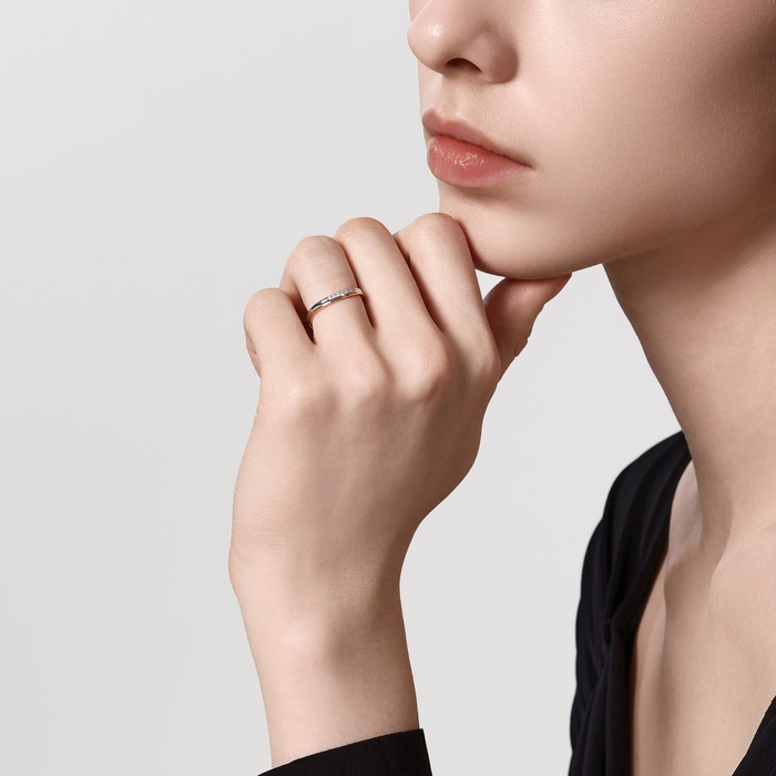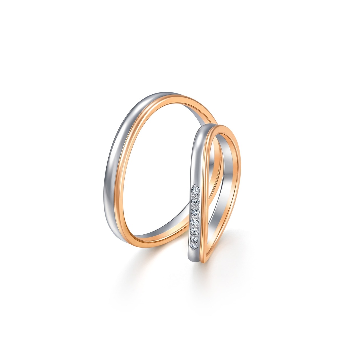 18K白紅分色黃金鑽石戒指,採用流暢柔美的波浪造型,白紅分色盡顯弧線的律動之美,結合美鑽映襯,優雅時尚,適合配搭各種日常穿搭,時刻閃耀動人光芒。