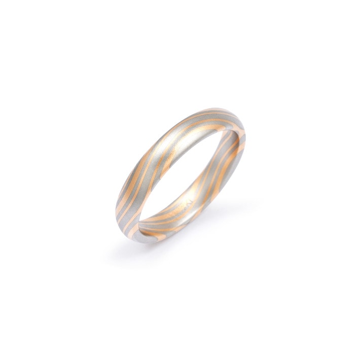 Chow Sang Sang - Artistically blending 18K gold and 950 platinum into a multi-layered wood grain pattern, the distinct colours of this ring are forged by complex processes like high-temperature composition, swaging and extension.