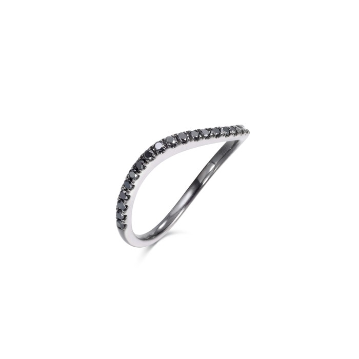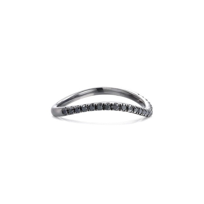 周生生S 型戒環上的單排黑鑽璀璨閃耀,簡約中帶點奢華風格,配襯其他戒指層疊佩戴,為日常穿搭增添多元形象。