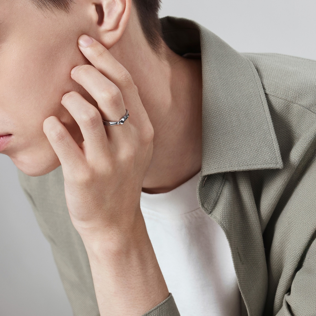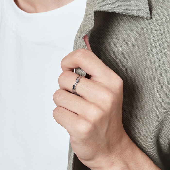 周生生950鉑金戒指,採用優雅浪漫的獨特設計,線條靈動流暢,彷如繾綣交織的愛情故事,造型簡約時尚,猶如「星宇」中的浪漫邂逅,亦適合日常配襯,時尚百搭。