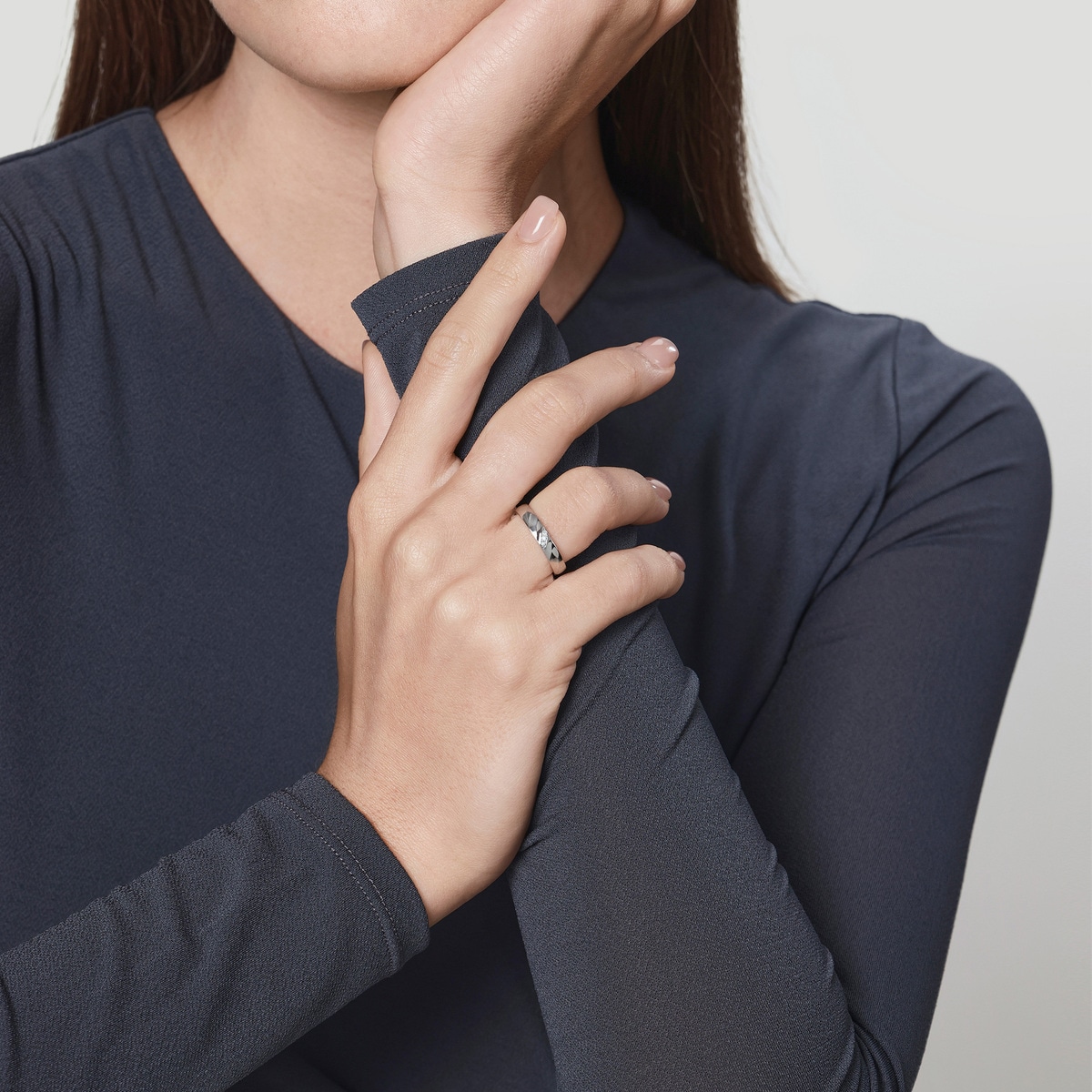 周生生950鉑金鑽石戒指,以豐富層次堆疊出獨特造型,與美鑽相互呼應,彷如彼此靠近的愛情軌跡,猶如「星宇」中的浪漫邂逅,燦若星辰,亦適合日常配襯,時尚百搭。
