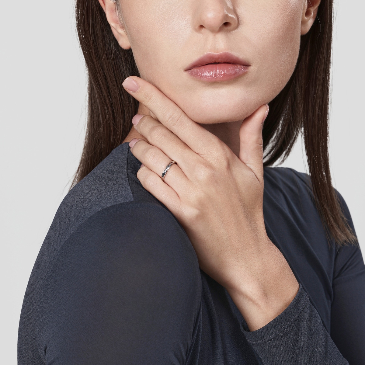 周生生950鉑金戒指,以豐富層次堆疊出獨特造型,彷如彼此靠近的愛情軌跡,猶如「星宇」中的浪漫邂逅,燦若星辰,亦適合日常配襯,時尚百搭。