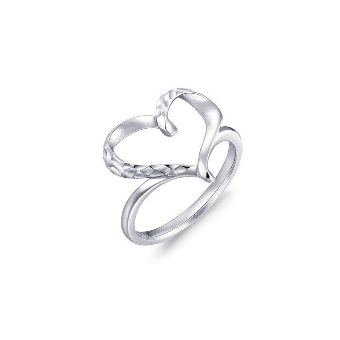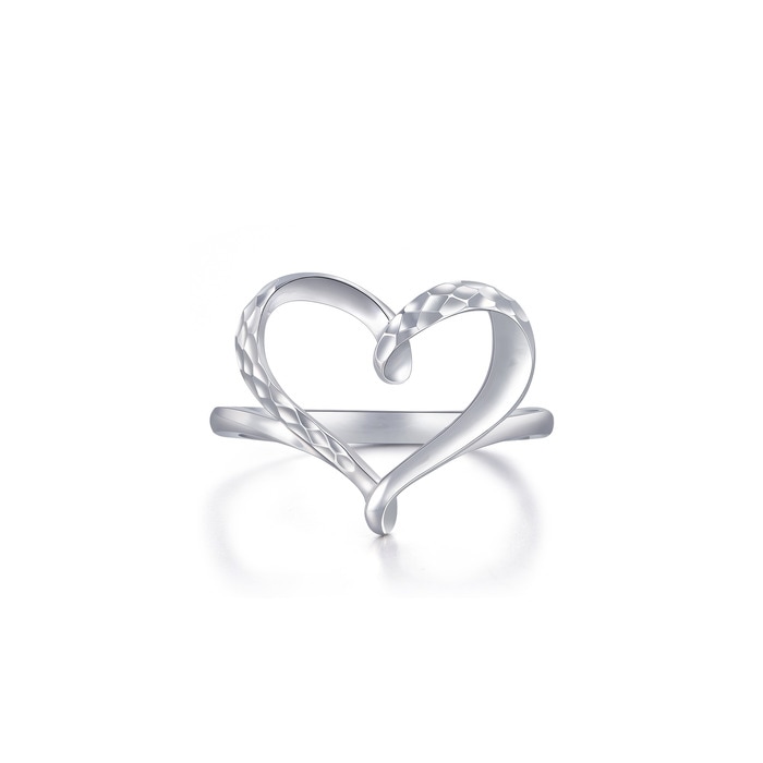 周生生戒指以950鉑金打造的流線心形,配上精緻批花工藝,立體富質感,時尚易襯。