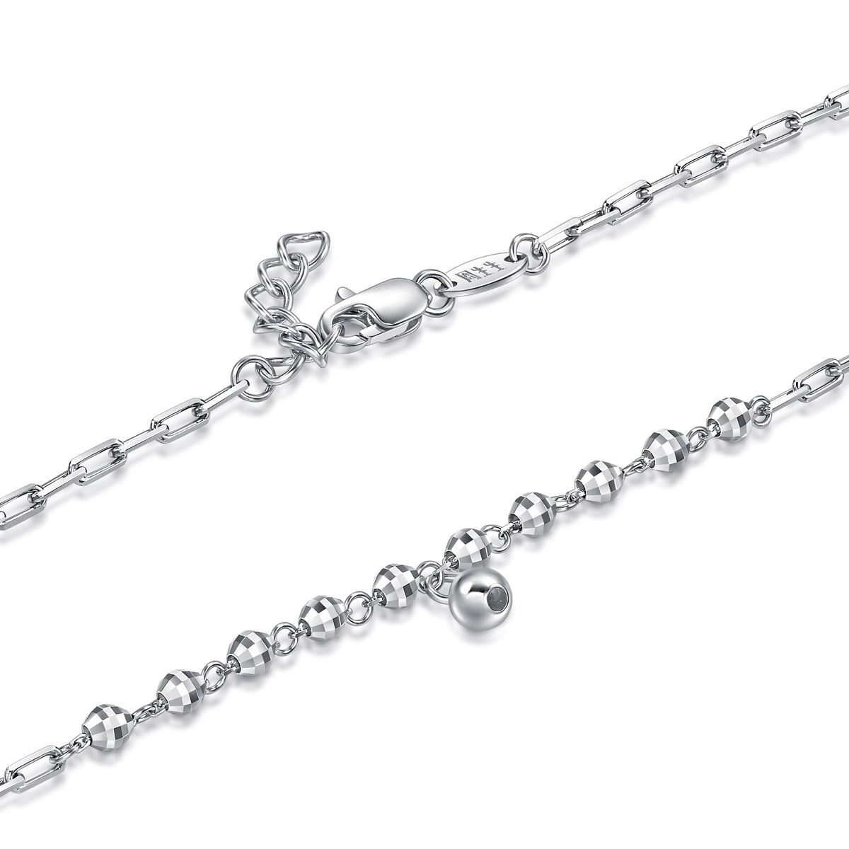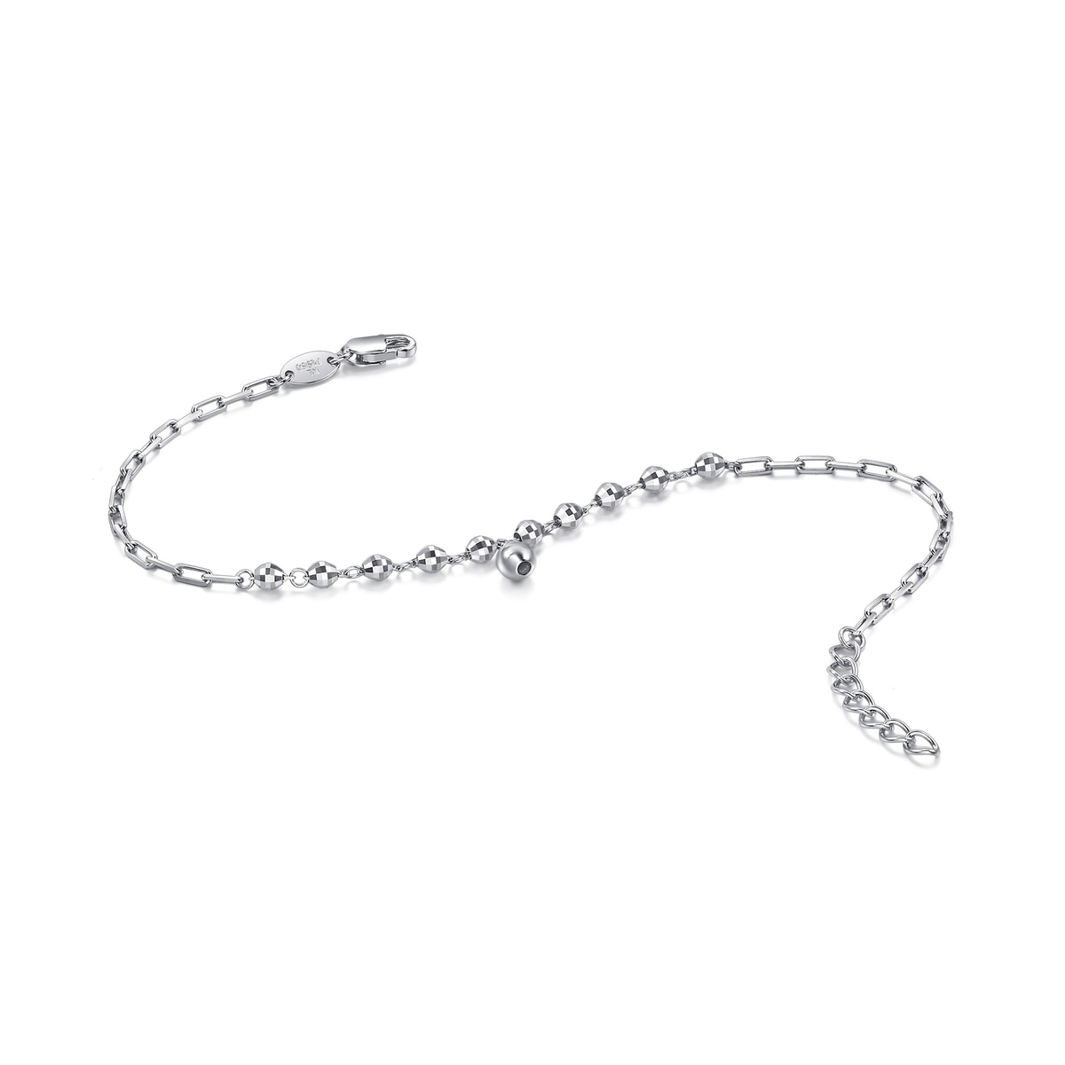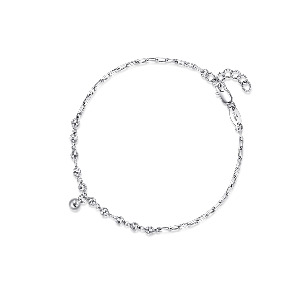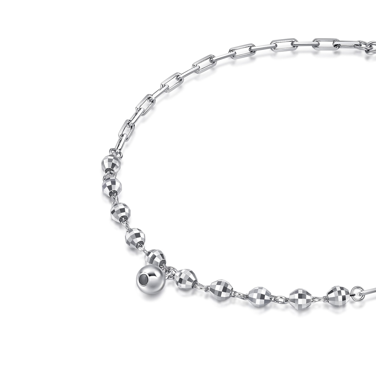 周生生以950鉑金打造的手錬,左右兩邊是長十字鍊設計,中間為批花圓珠錬,配搭批花圓珠吊飾,閃亮造型富層次感。