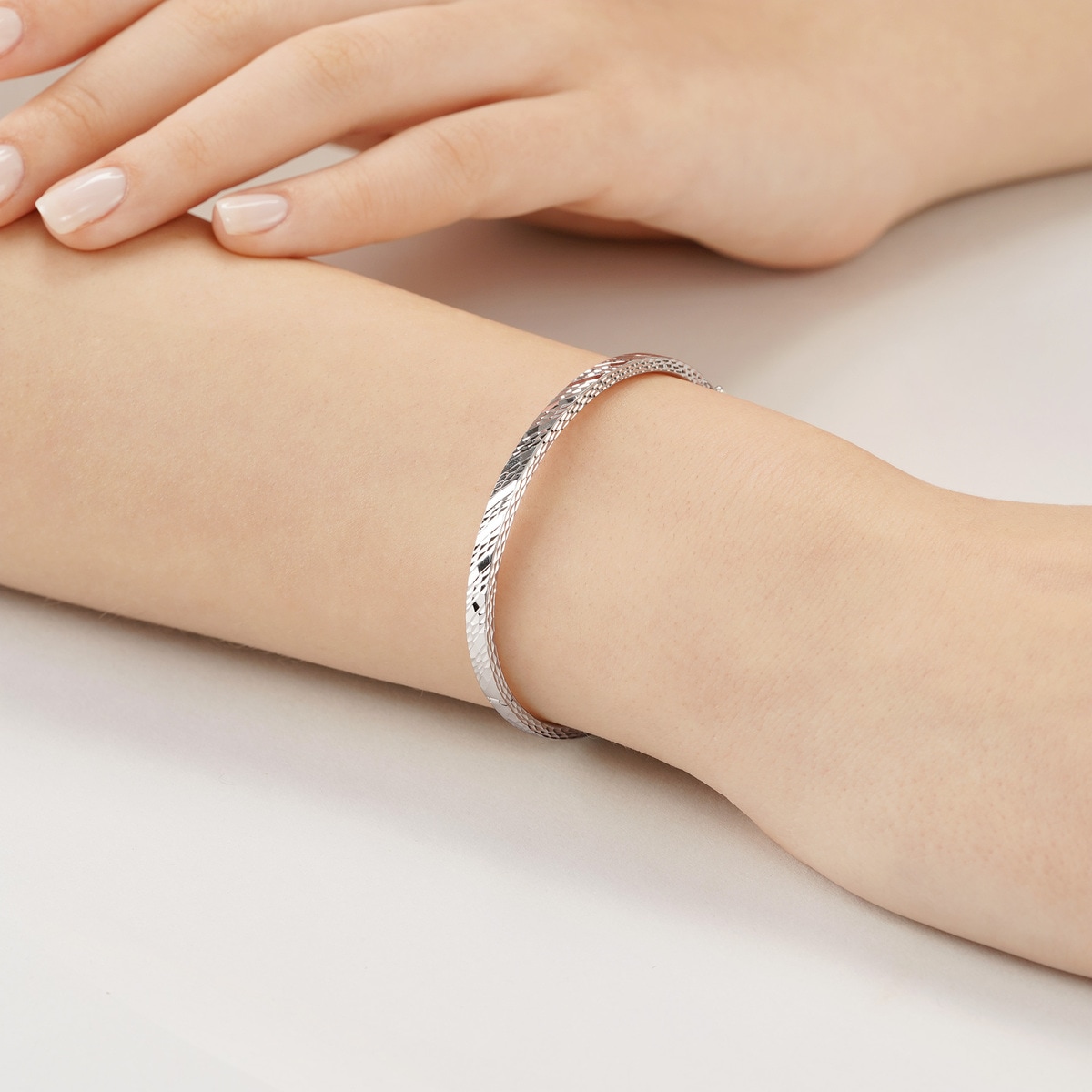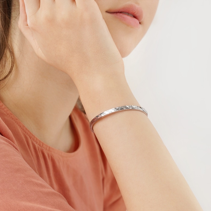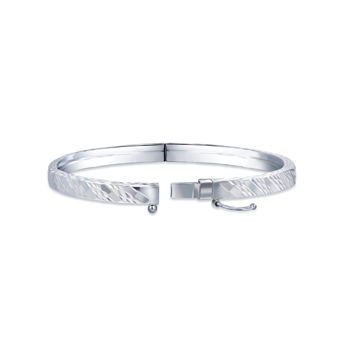 周生生950鉑金手鐲採用紋理設計,時尚簡約,閃耀動人光芒,鎖扣設計方便佩戴,日常造型更添優雅。