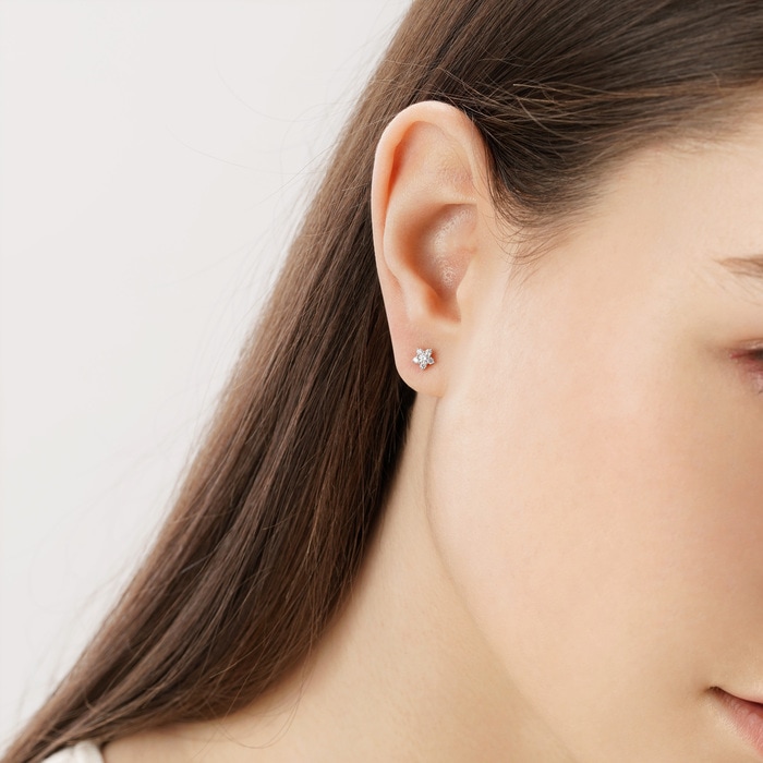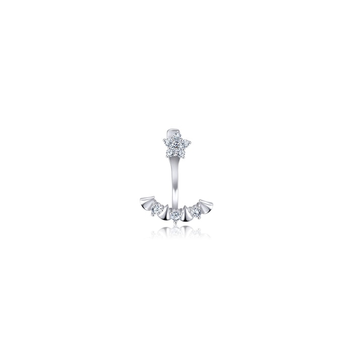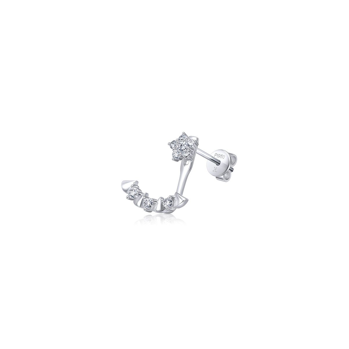 950 鉑金耳環,以多顆美鑽拼成閃爍花形,加上倒轉T型設計,下排閃亮鑽石懸垂在耳垂下,營造層次感,造型新穎大方。