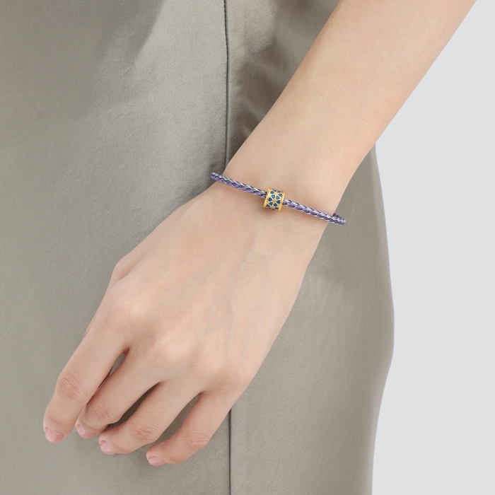 周生生汲取宮廷美學的雅韻靈感,故宮宮廷文化「築」系列足金串珠,將清朝宮殿建築圖案「三交六椀菱花」注入時尚珠寶設計之中,用立體造型勾畫三交六椀菱花,採用硬金電鑄技術,質感精緻動人,結合彩繪塗層,呈現絢爛色彩,以當代美學詮釋古典韻味,風格清新優雅,適合日常佩戴。