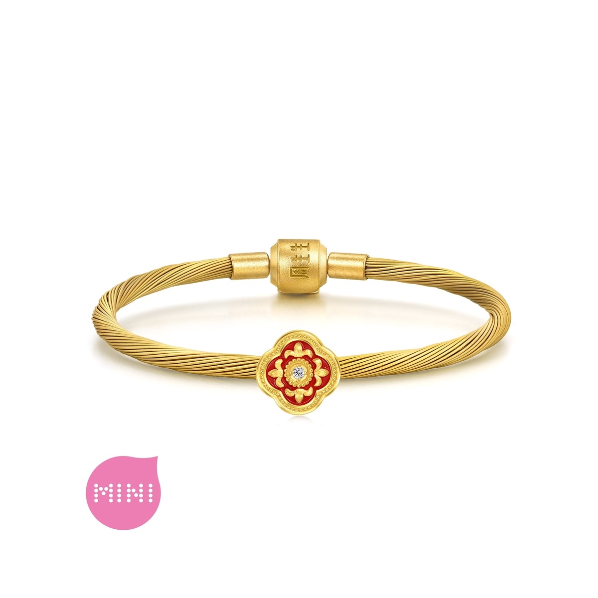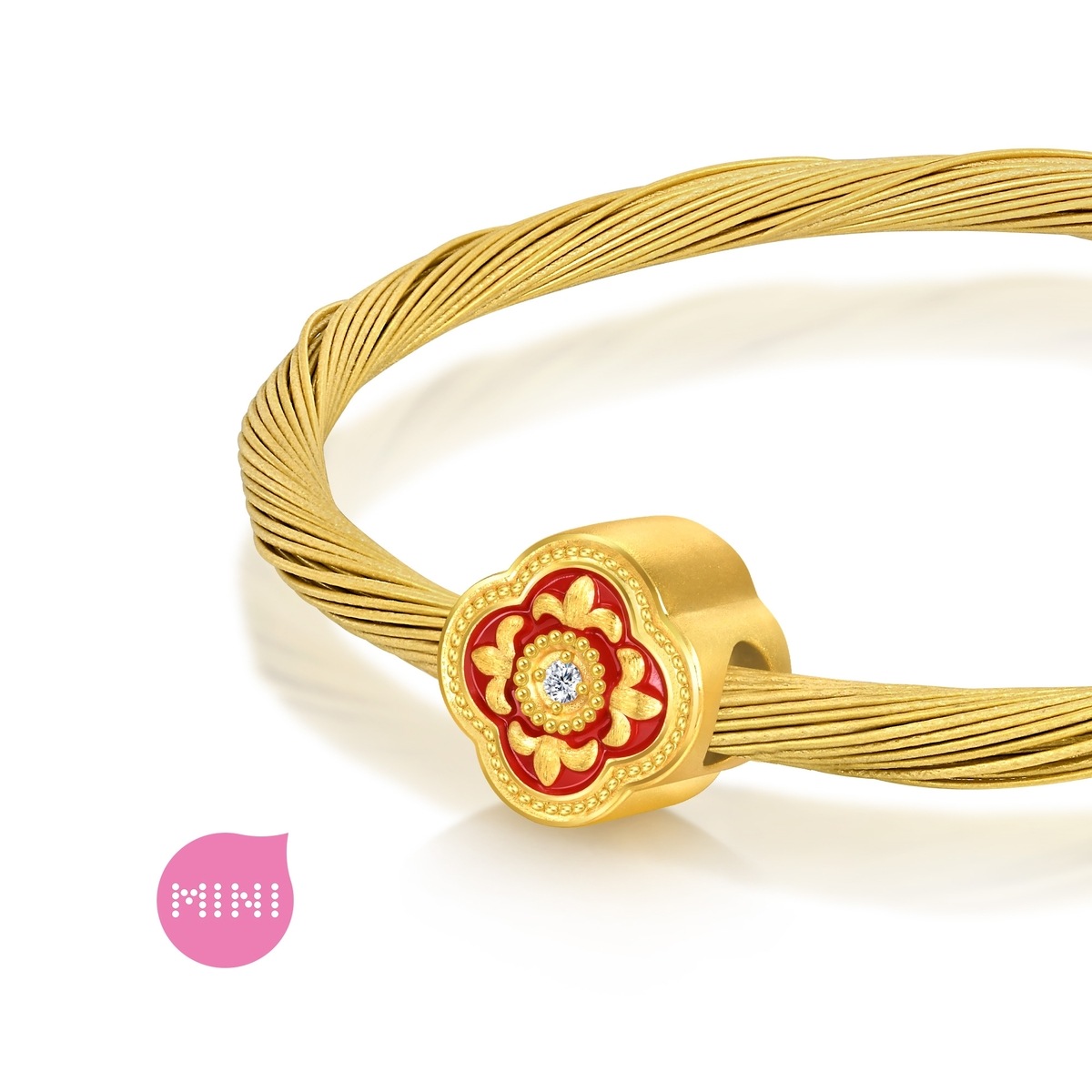 周生生足金串珠靈感源自V&A博物館的珍貴館藏,原有藏品為著名建築師 AWN Pugin設計的頸鍊,串珠運用硬金電鑄及彩繪塗色工藝,重現藏品細緻獨特花紋,中心精鑲閃耀美鑽,讓復古風格更添華麗。