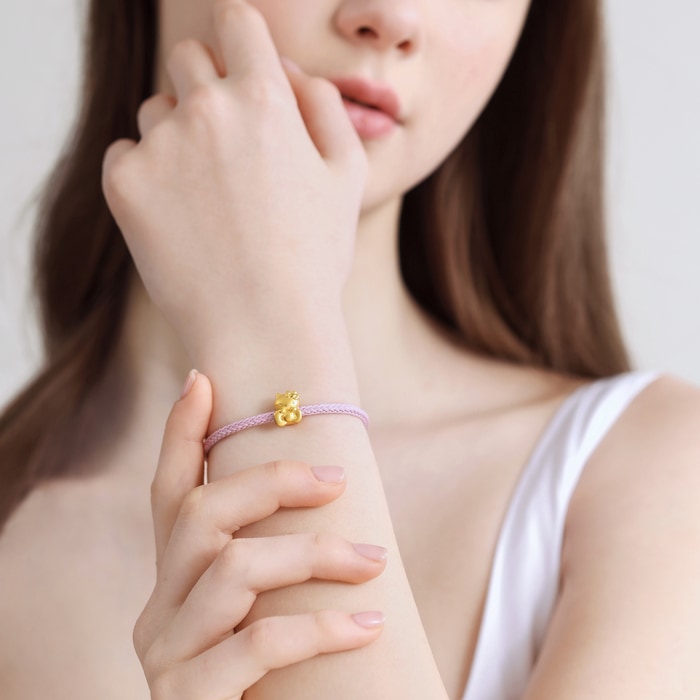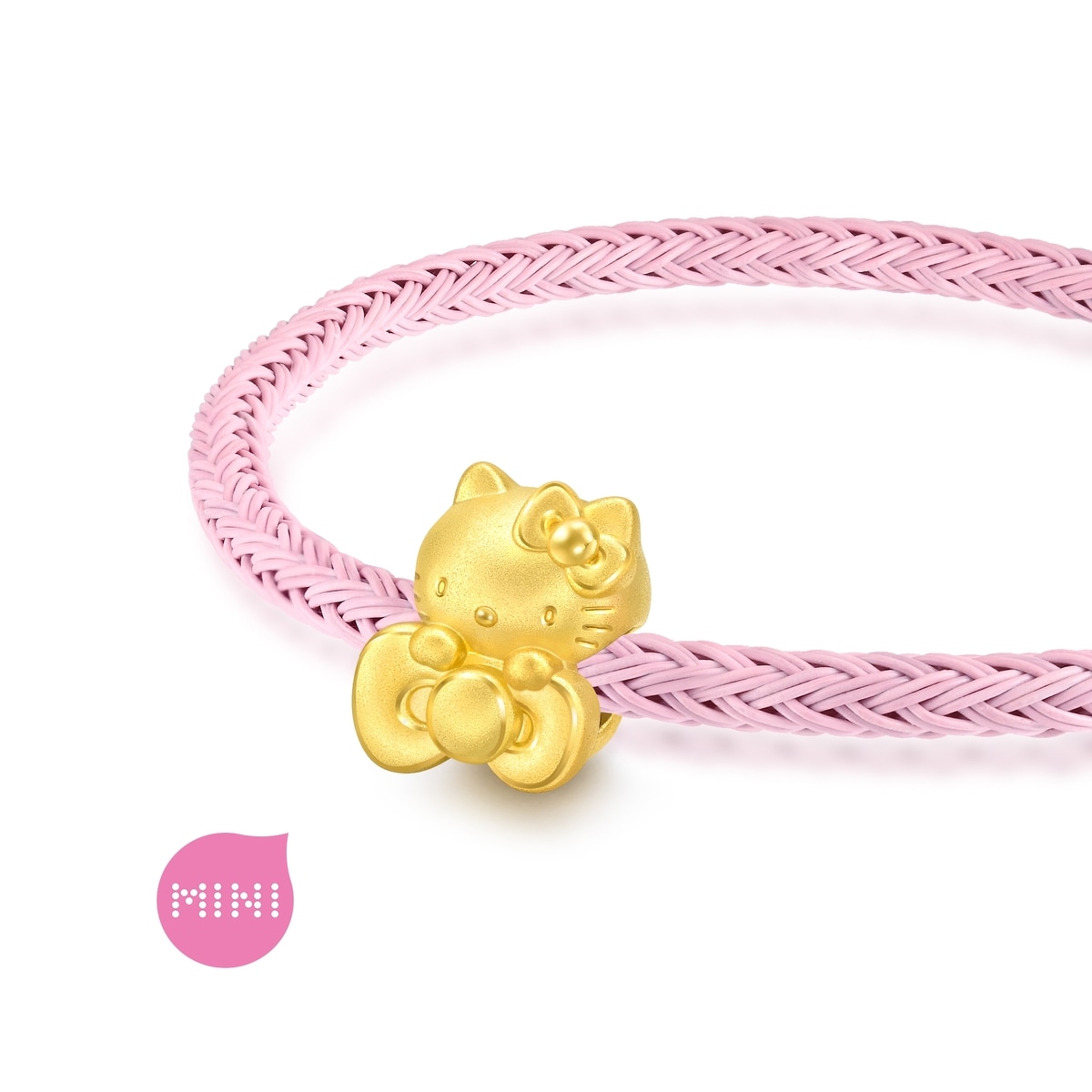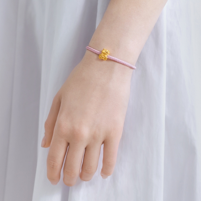 周生生足金串珠以手抱蝴蝶結的Hello Kitty為設計主題,結合噴砂表面處理技術,質感細膩,更顯可愛甜美,送上愛的祝福,讓人一見傾心。