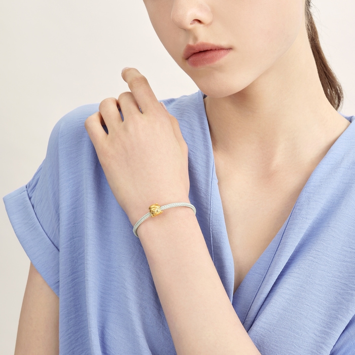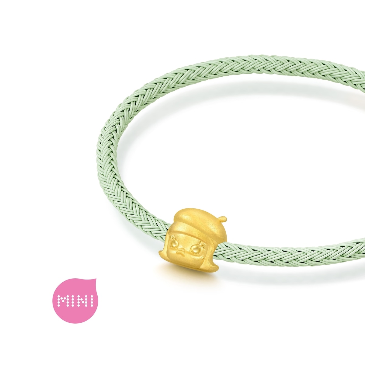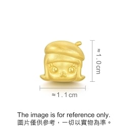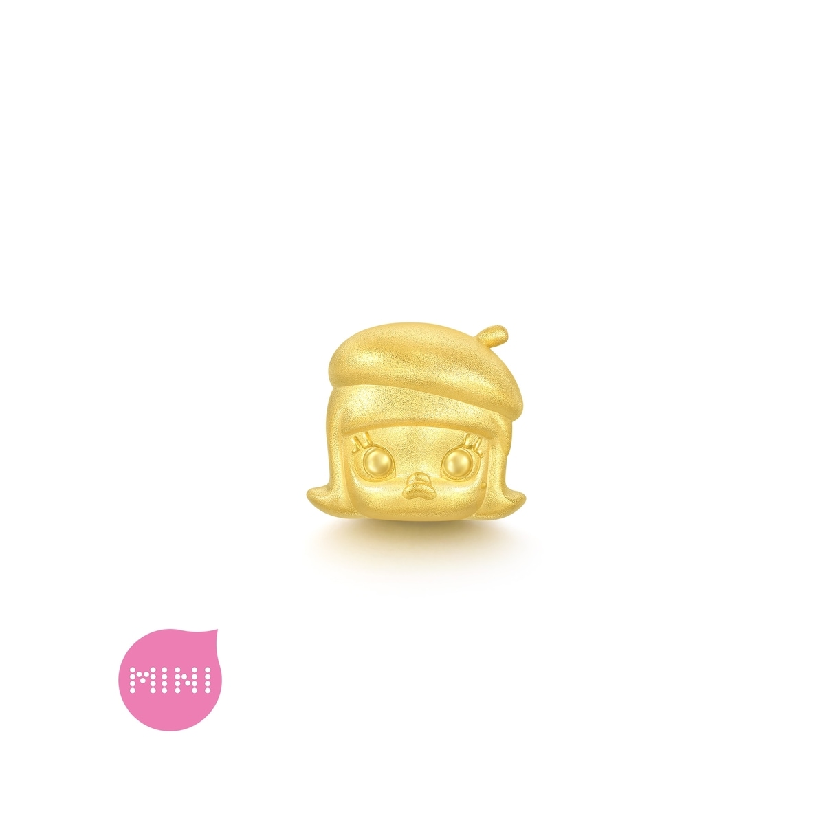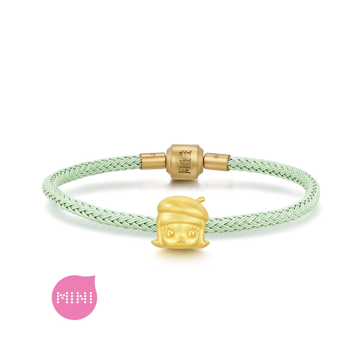 周生生足金串珠設計源自 POP MART 的經典MOLLY角色,結合硬金電鑄、拋光及噴砂工藝,一一刻劃出MOLLY的大眼睛、畫家帽及微曲的短髮造型,表情乖萌可愛,質感精緻細膩,叫人愛不釋手。