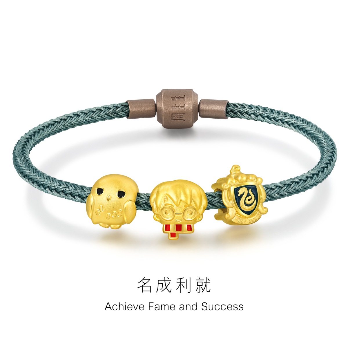 周生生足金串飾以《哈利·波特》為主題元素,採用史萊哲林學院徽章為設計之源,巧妙結合彩繪圖塗層工藝,呈現學院的專屬標誌 ──蛇、綠色及學院名稱「Slytherin」,造型栩栩如生、鮮明奪目,匯聚蛇院所尊崇的「野心與智謀」,充滿濃厚魔幻氣息。
