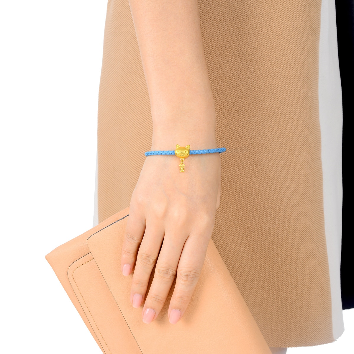 貓戀魚,貓與魚的完美組合,寓意我愛您。串起不同黃金掛飾,搭配出自己的風格。 Charme內膠 (中國香港: 短期專利註冊號HK1195193 / 中國大陸: 實用新型專利號ZL201420392212.4 )