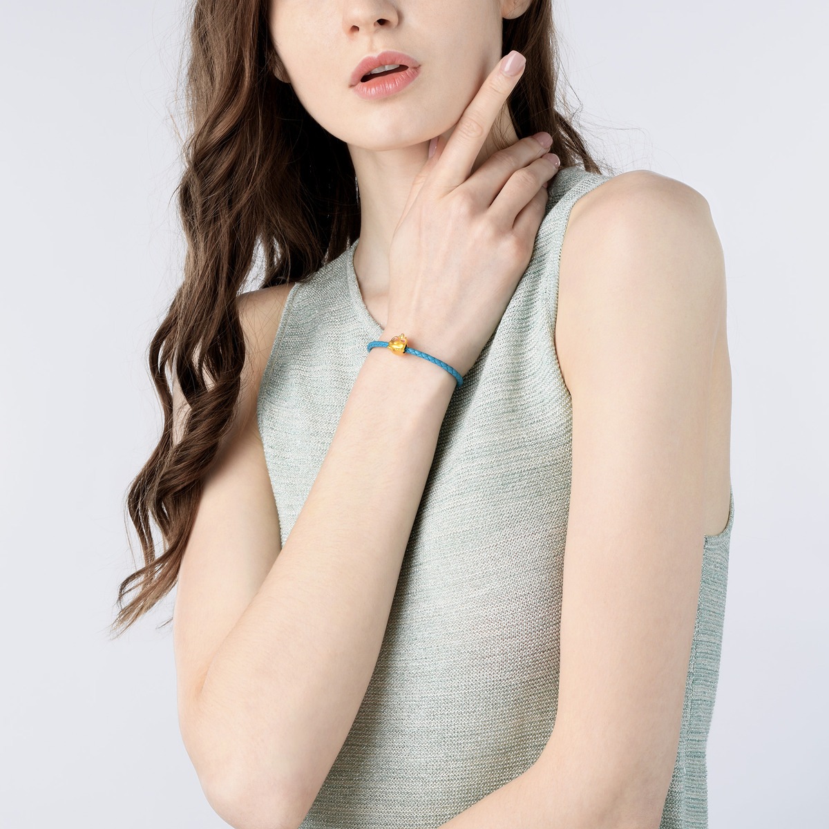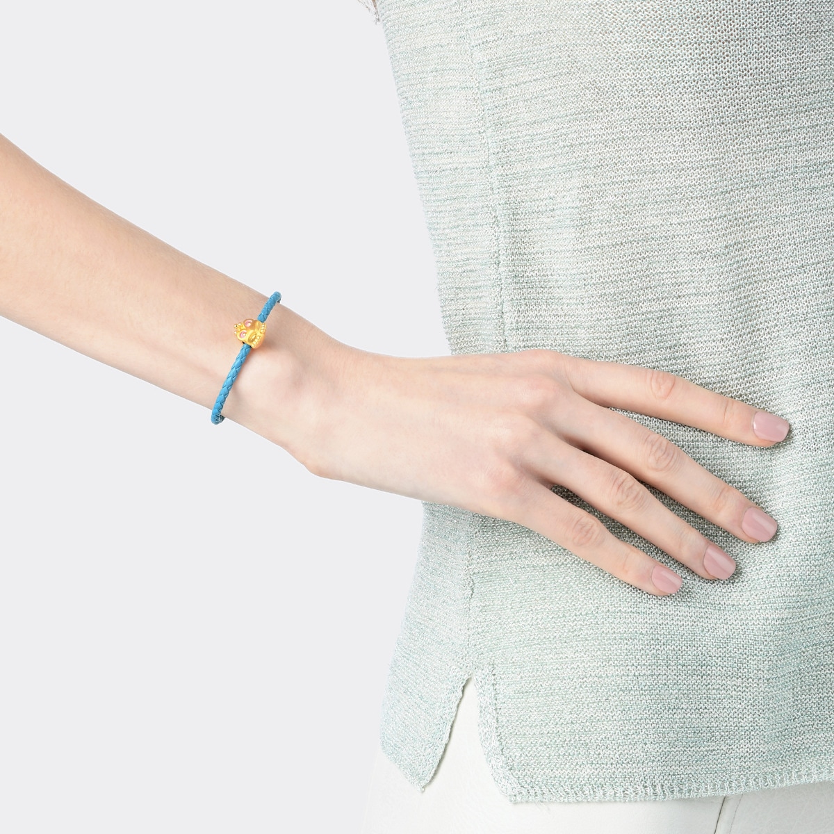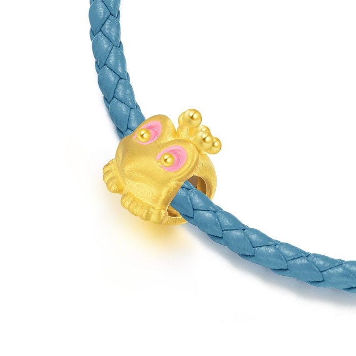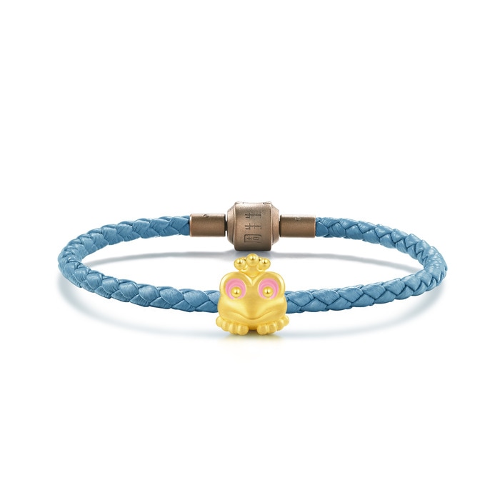 小青蛙活躍好動,在腕間散播快樂活力。黃金串珠造型生動,加上透明彩繪塗層,令色彩層次更顯豐富。