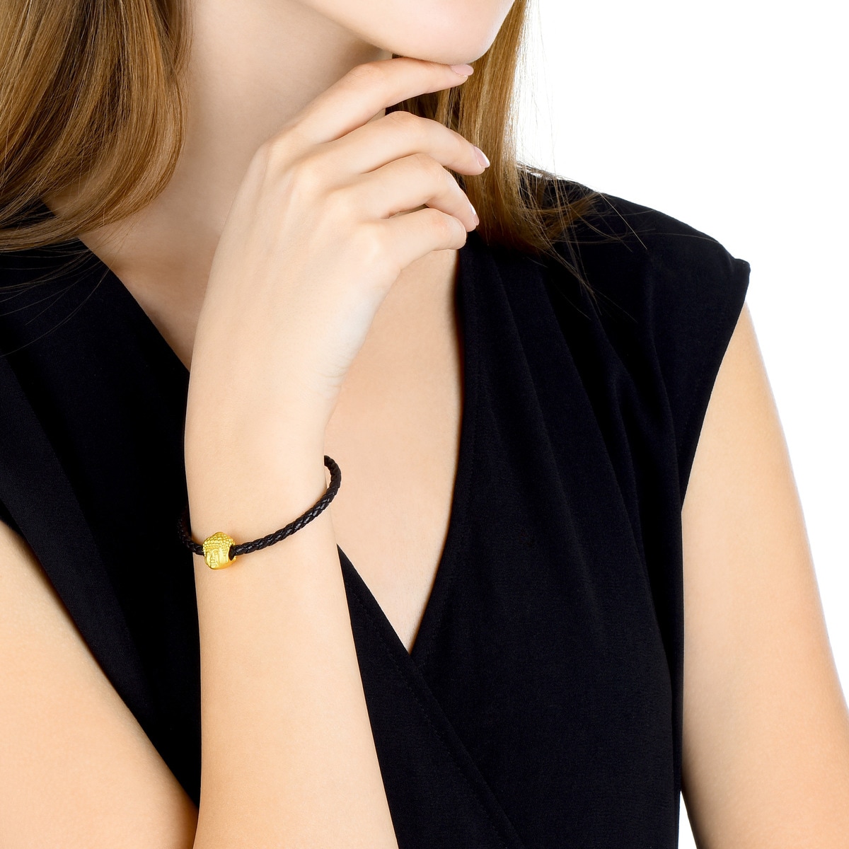 在佛教中有著崇高地位的佛陀,化身造型別致的黃金串珠,象徵智慧及平安。串珠做工精巧,佛陀頭上的肉髻與福耳均細緻呈現。