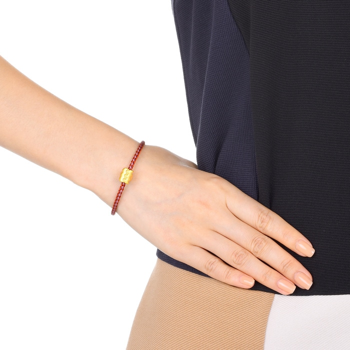 將Charme串珠按您預想的組合順序,逐一慢慢旋入配繩。串珠內壁設有硅膠,可幫助串珠固定在預想的位置,所以穿繩時感覺有點緊是正常現象。