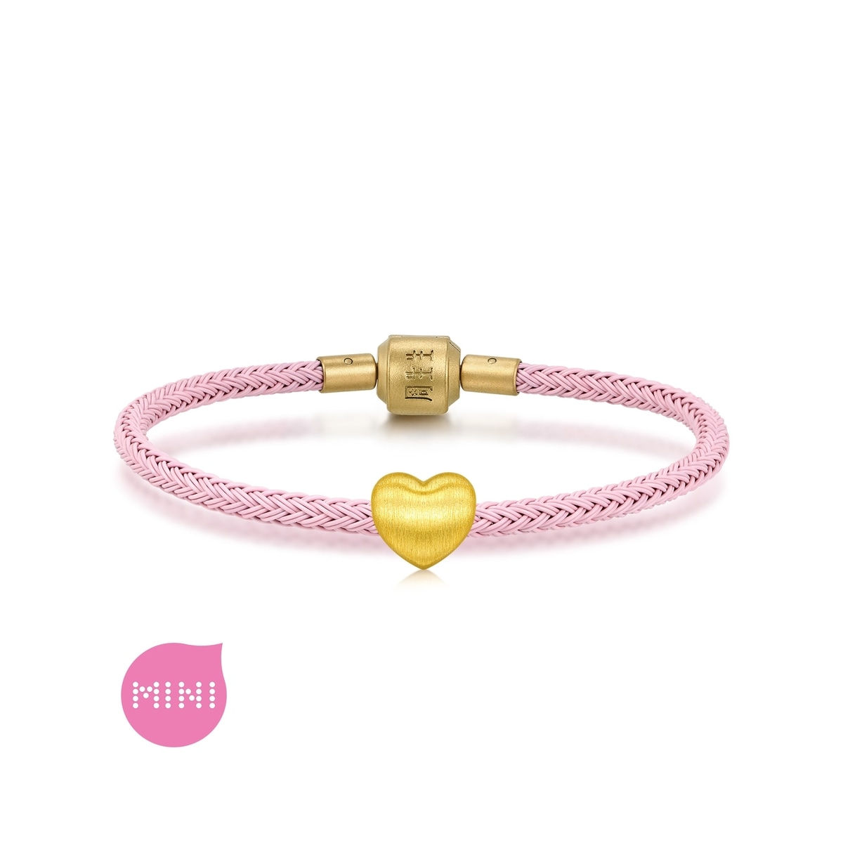 周生生Charme足金串珠,體積精緻小巧,工藝細緻,質感更顯細膩。心形表面加上拉絲效果,更顯時尚動感。