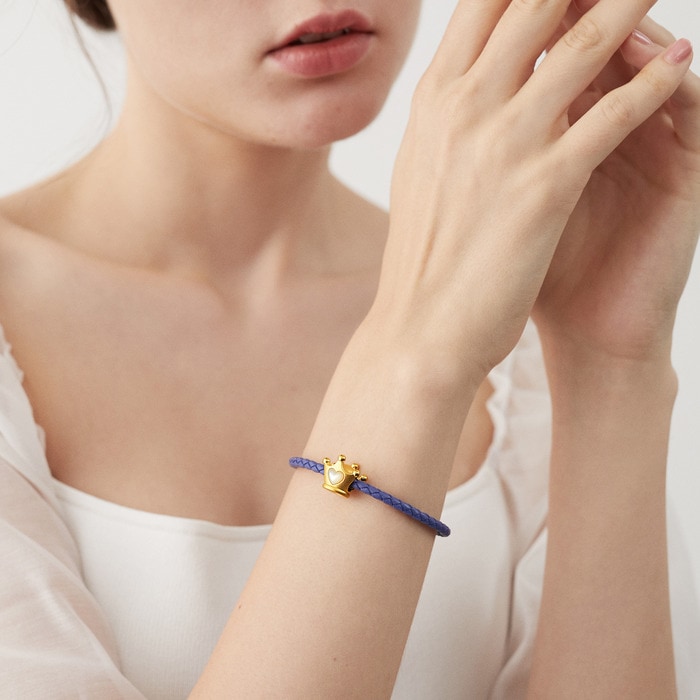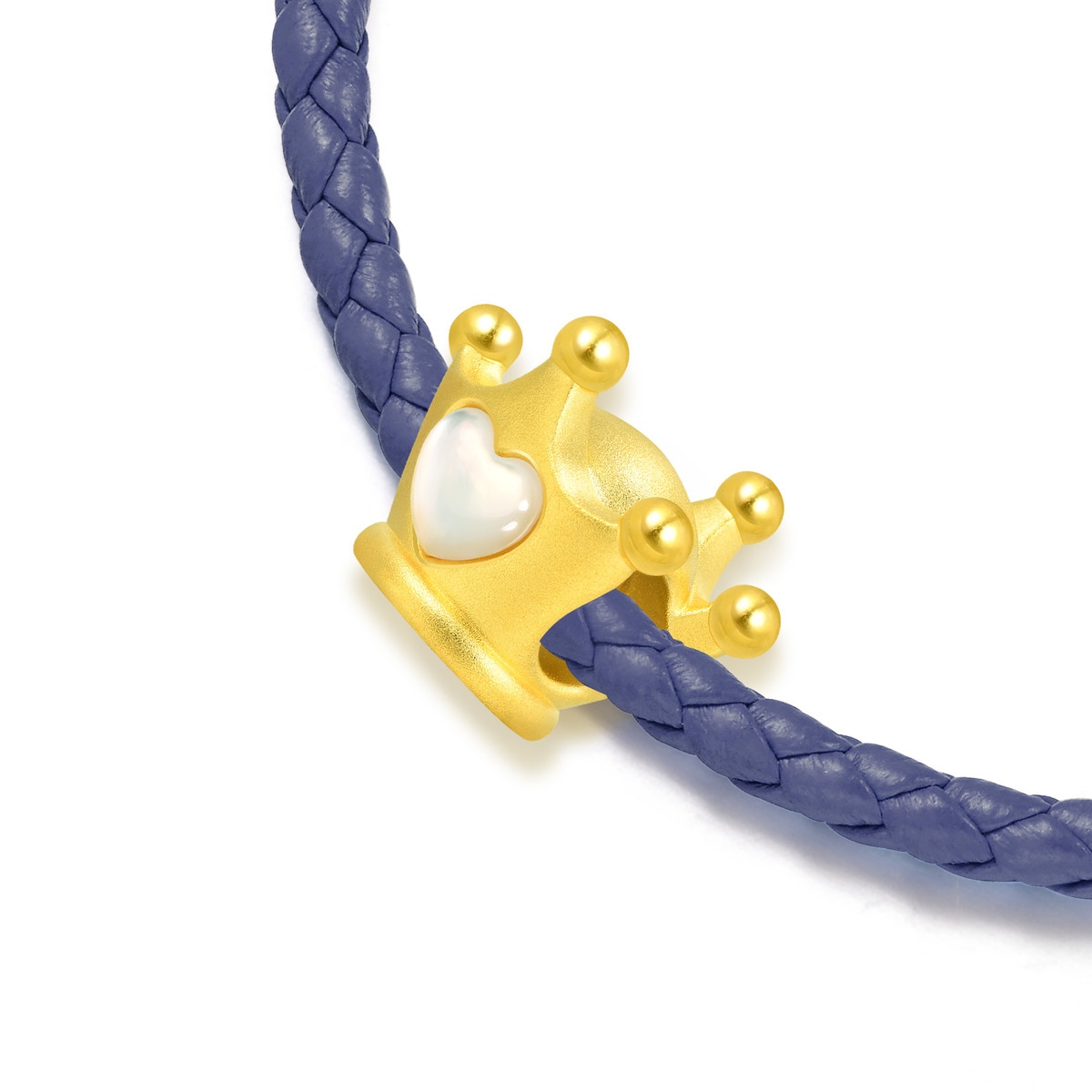 周生生足金串珠以皇冠為設計靈感,加上前後均有人手打磨的心形珍珠貝母點綴,散發天然幻彩光澤,細緻飽滿,甜蜜滿溢,為摯愛華麗加冕。