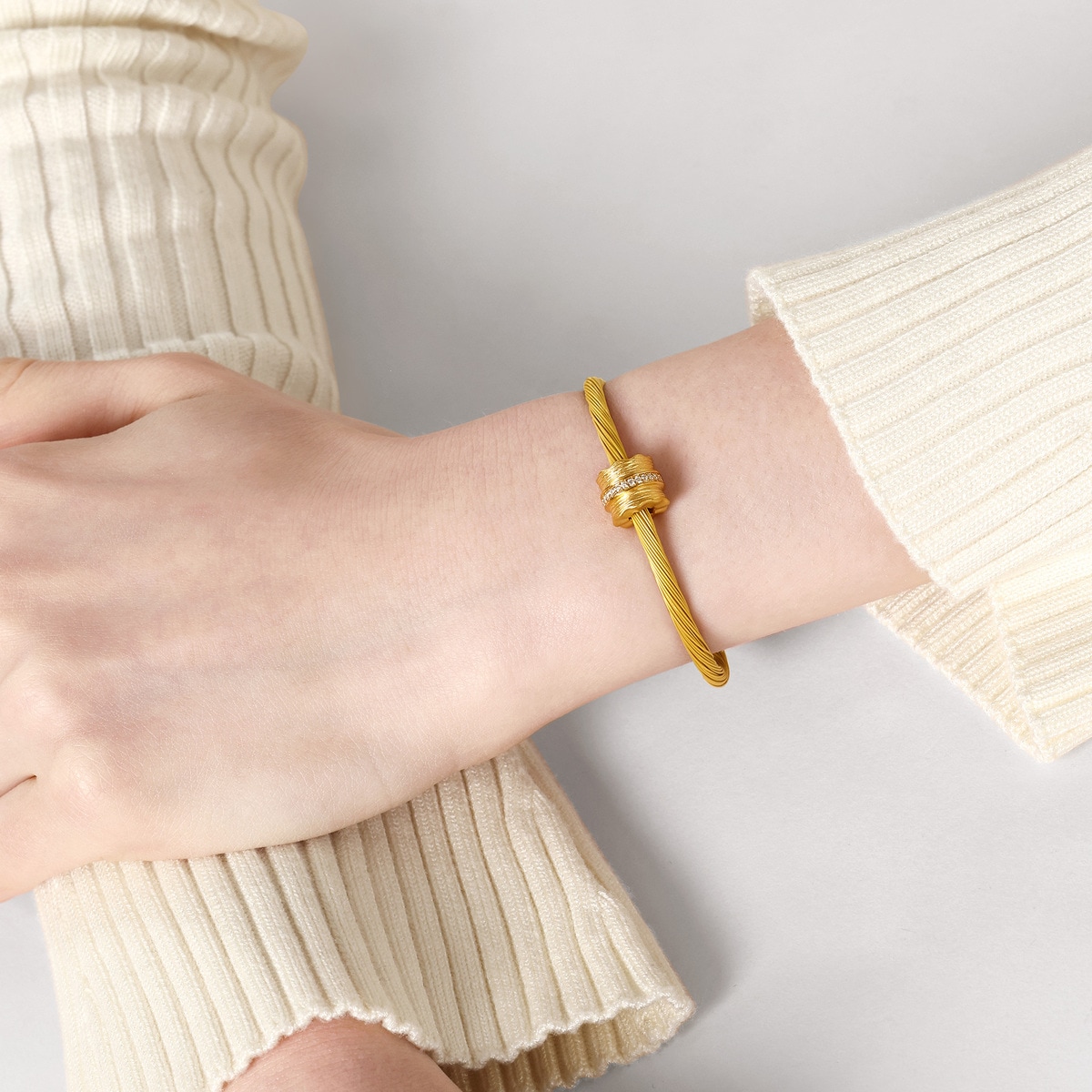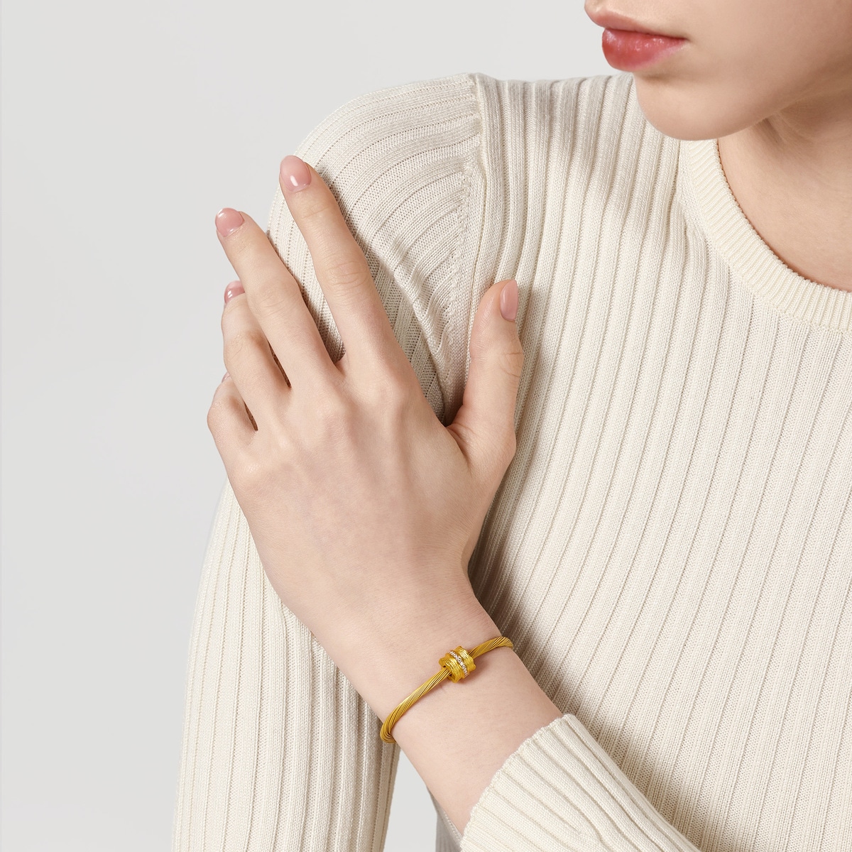 將Charme串珠按您預想的組合順序,逐一慢慢旋入配繩。串珠內壁設有硅膠,可幫助串珠固定在預想的位置,所以穿繩時感覺有點緊是正常現象。